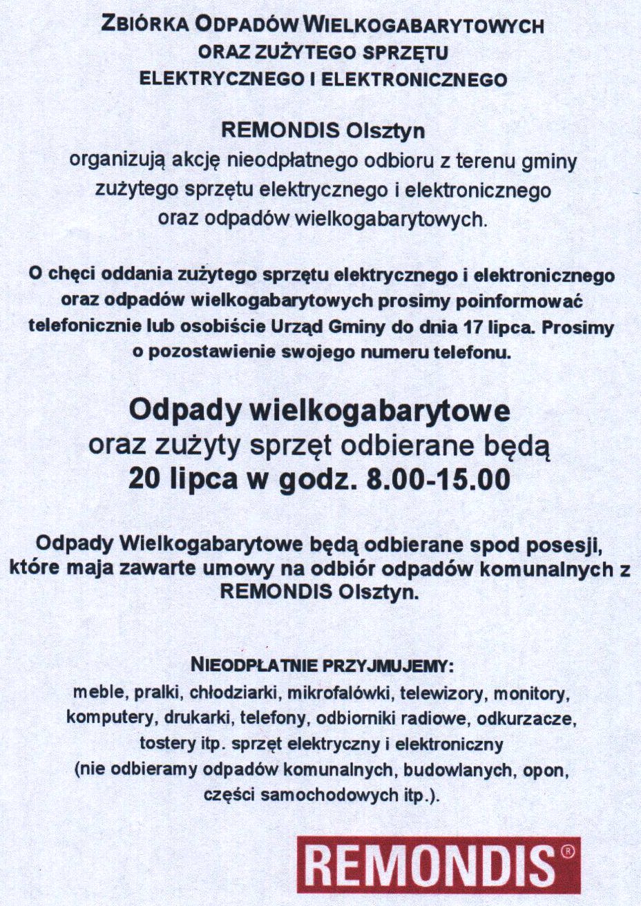 3. Zbiórka odpadów wielkogabarytowych oraz zużytego sprzętu elektrycznego i elektronicznego