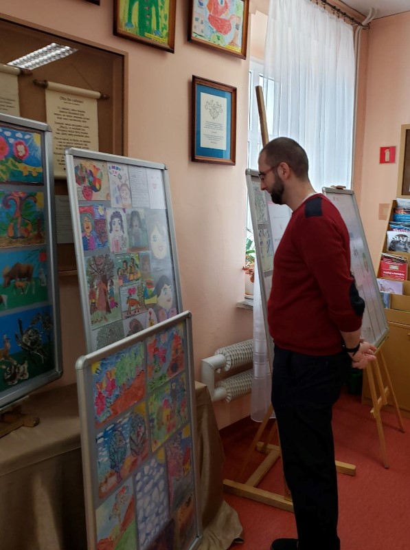 Czytelnicy oglądający prace