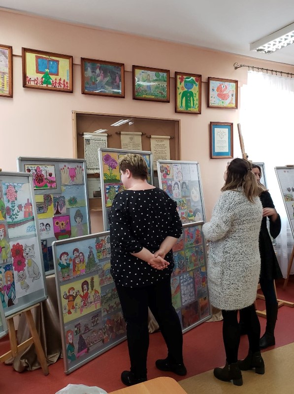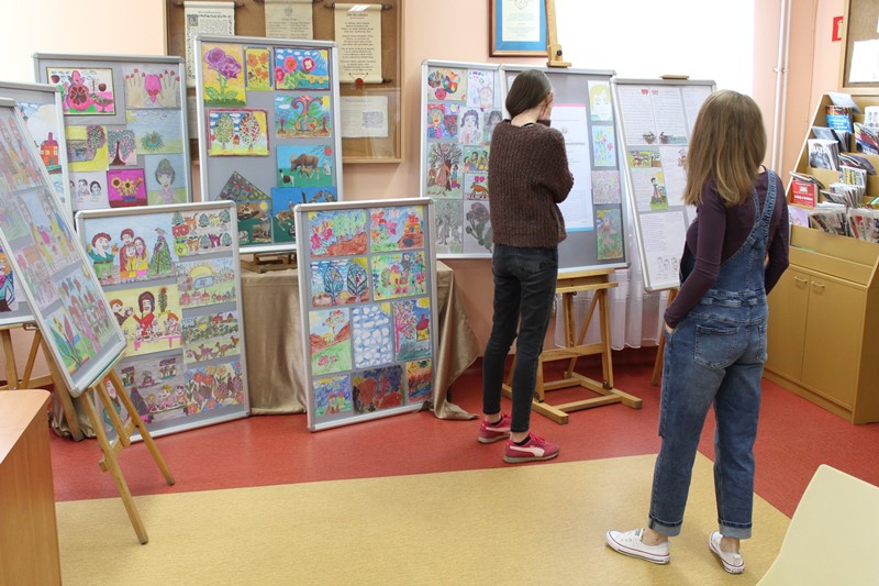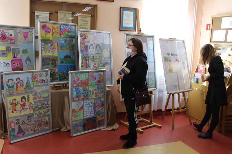 Czytelniczki oglądające wystawę prac