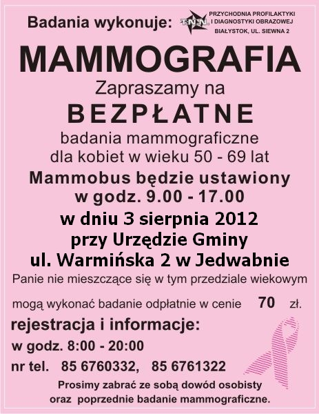 3. Bezpłatne badania mammograficzne 03.08.2012