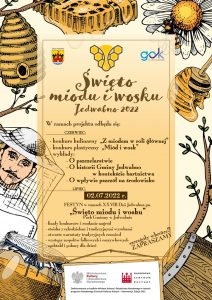 Projekt „ŚWIĘTO MIODU I WOSKU” został dofinansowany z programu Narodowego Centrum Kultury: Kultura – Interwencje. Edycja 2022 w kwocie 23 000 zł. Polega on na organizacji cyklu wydarzeń, które mają na celu przybliżenie lokalnych tradycji związanych z terenem Gminy Jedwabno oraz całego regionu, którego historia silnie związana jest z bartnictwem oraz produkcją miodu i wosku. W ramach projektu planuje się organizację cyklu 3 wykładów związanych z tematyką wydarzenia, organizację konkursu kulinarnego na danie z miodem, tematycznego konkursu plastycznego oraz organizację festynu pn. „Święto Miodu i Wosku”, który odbędzie się 2 lipca 2022 roku w ramach tegorocznych Dni Jedwabna. Podczas wydarzenia, oprócz finału ww. konkursów, nie zabraknie stoisk z rękodziełem i tradycyjnymi wyrobami głównie związanymi z ww. profesją a także otwartych warsztatów tradycyjnych rzemiosł, występów lokalnych i zaproszonych zespołów folkowych i rozrywkowych oraz pokazów i spektaklu dla dzieci. Serdecznie zapraszamy do udziału w wykładach, konkursach i festynie.