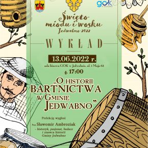 - Godz. 17:00 – „O historii bartnictwa w Gminie Jedwabno”. Prelekcję wygłosi Pan Sławomir Ambroziak – historyk, pasjonat, badacz i znawca historii Gminy Jedwabno.