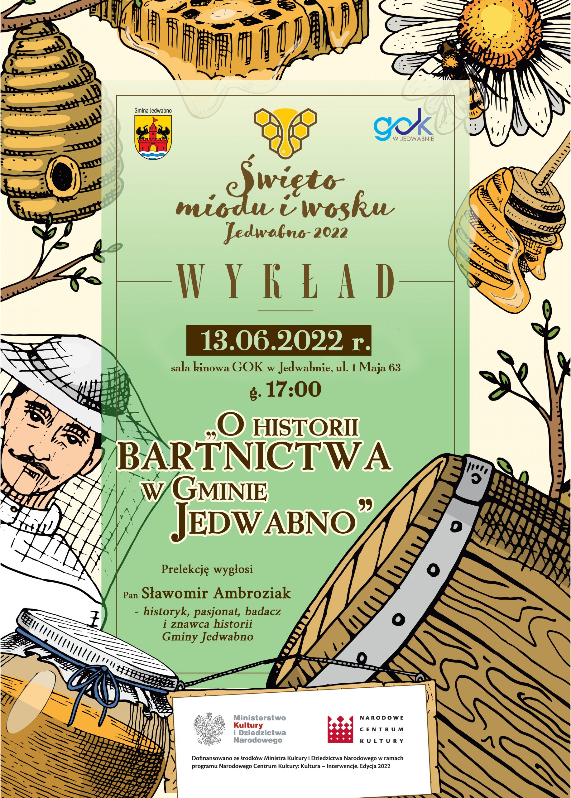 Cykl wykładów jest organizowany w ramach projektu „ŚWIĘTO MIODU I WOSKU”, który został dofinansowany z programu Narodowego Centrum Kultury: Kultura – Interwencje. Edycja 2022.