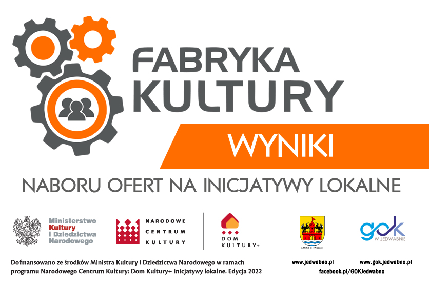 Ogłaszamy wyniki naboru ofert na inicjatywy kulturalne dla mieszkańców Gminy Jedwabno. W ramach projektu pn. FABRYKA KULTURY dofinansowanie otrzymały 4 projekty. Szczegóły w załączniku.