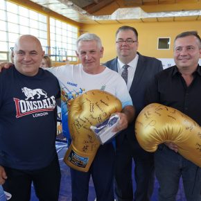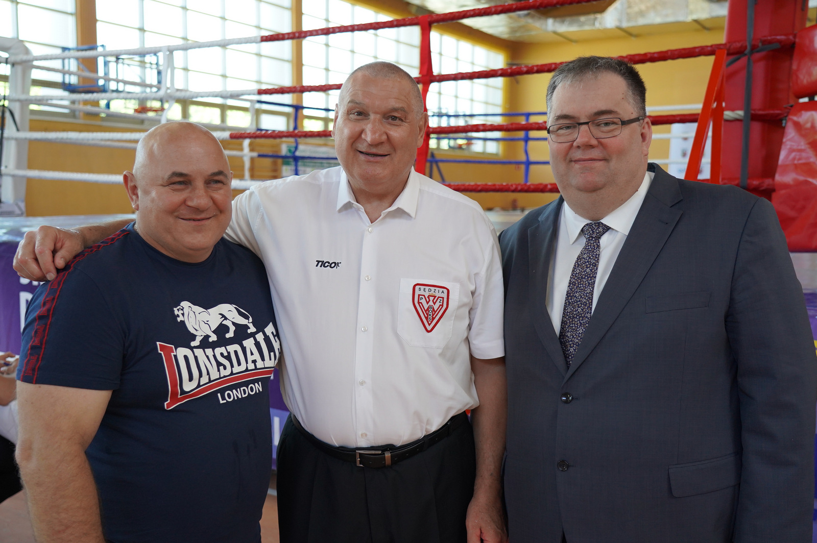 - Sławomir Ambroziak-Wójt Gminy Jedwabno z trenerem-Zenonem Jagiełło i Wicemistrzem olimpijskim w boksie z 1980. Pawłem Skrzeczem