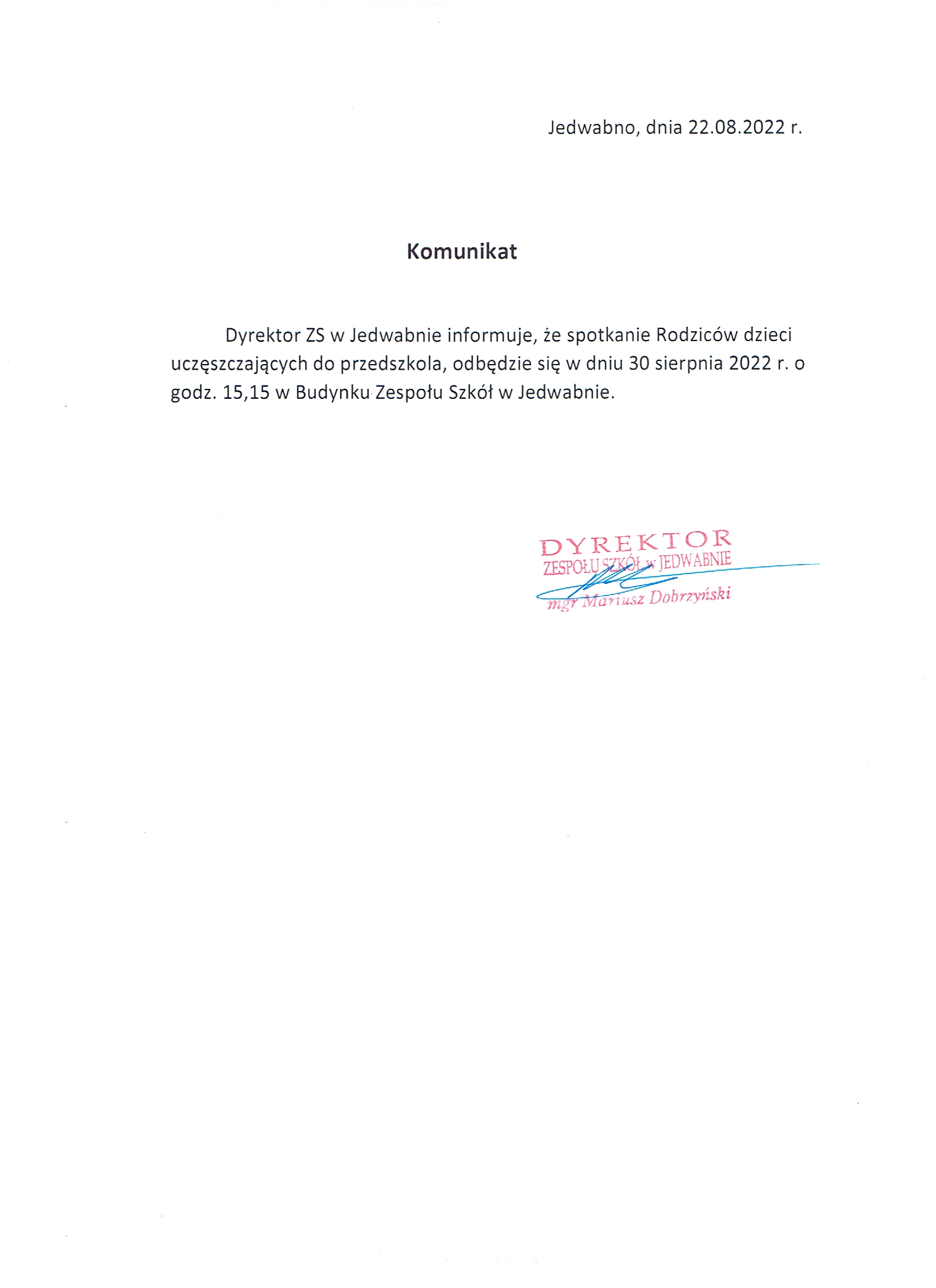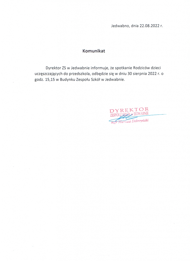 3. Spotkanie rodziców dzieci uczęszczających do przedszkola -30.08.2022 r.