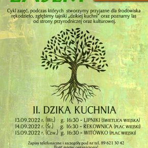 Zapraszamy kolejne spotkania z cyklu zajęć pn. „Relacje z lasem, które odbędą się w miejscowościach: Rekownica, Lipniki i Witówko.