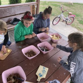 - Uczestnicy z Rekownicy krojący ziemniaki