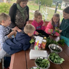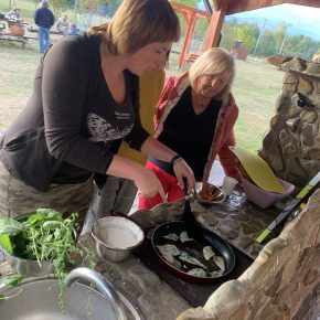 - Instruktorka i uczestniczka smażąće czipsy z liści pokrzyw