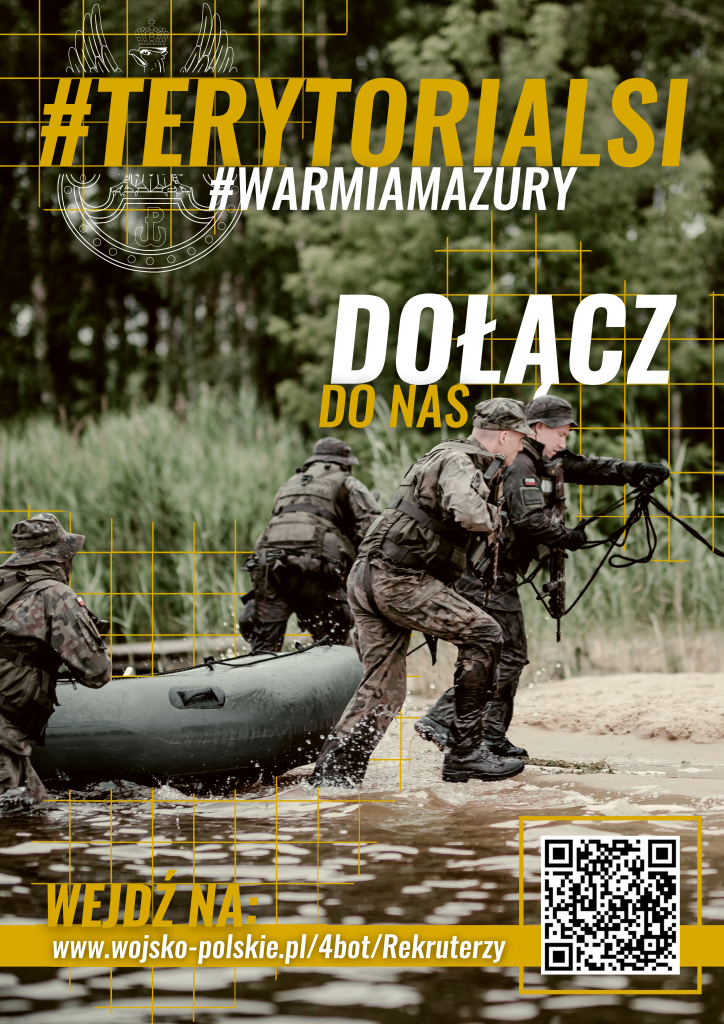 W piątek tj. 23.09.2022 r. przy głównym wejściu do budynku Gminnego Ośrodka Kultury w Jedwabnie w godzinach 17:00 – 19:00 będzie prowadzony nabór do 4 Warmińsko – Mazurskiej Brygady Obrony Terytorialnej. Serdecznie zapraszamy wszystkich zainteresowanych.