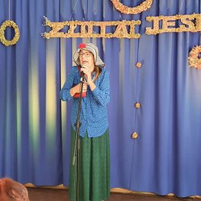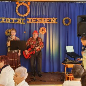W miniony piątek tj. 7 października 2022 r. przy sprzyjającej pięknej i ciepłej aurze złotej polskiej jesieni w Jedwabnie, odbył się Dzień Seniora. Podobnie jak w ubiegłym roku organizacji tej uroczystości podjęli się Gminny Ośrodek Kultury, Klub Seniora „Złota Jesień” oraz Środowiskowy Dom Samopomocy w Jedwabnie. Bogaty program artystyczny otworzyła grupa kabaretowa pn. I CO DALEJ…. działająca przy Uniwersytecie Trzeciego Wieku w Szczytnie ze swoim prześmiesznym skeczem pt. „MĘŻCZYZNA + KOBIETA = KABARET”. Na muzycznej scenie zaprezentowały się znane wszystkim „JEDWABKI” oraz grupa wykonująca występ cygański, którą tworzą nasi lokalni seniorzy uczęszczający do Środowiskowego Domu Samopomocy w Jedwabnie. Podczas spotkania uczestnicy mieli możliwość degustacji zupy grzybowej z łazankami, bigosu czy słodkich domowych wypieków. Biesiadowaniu towarzyszyło wspólne śpiewanie przy akompaniamencie na akordeonie, a także występ Agaty Laskowskiej skrzypaczki wykonującej hity muzyki klasyczno – rozrywkowej. Miłym akcentem dla Jubilatów był wielki tort przygotowany specjalnie na tę okoliczność oraz wspólne odśpiewanie „sto lat”.