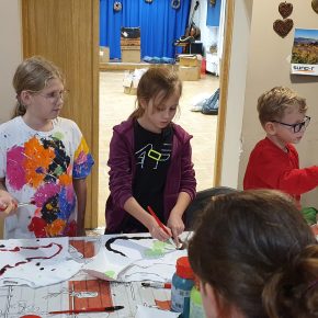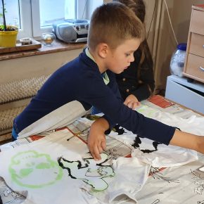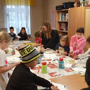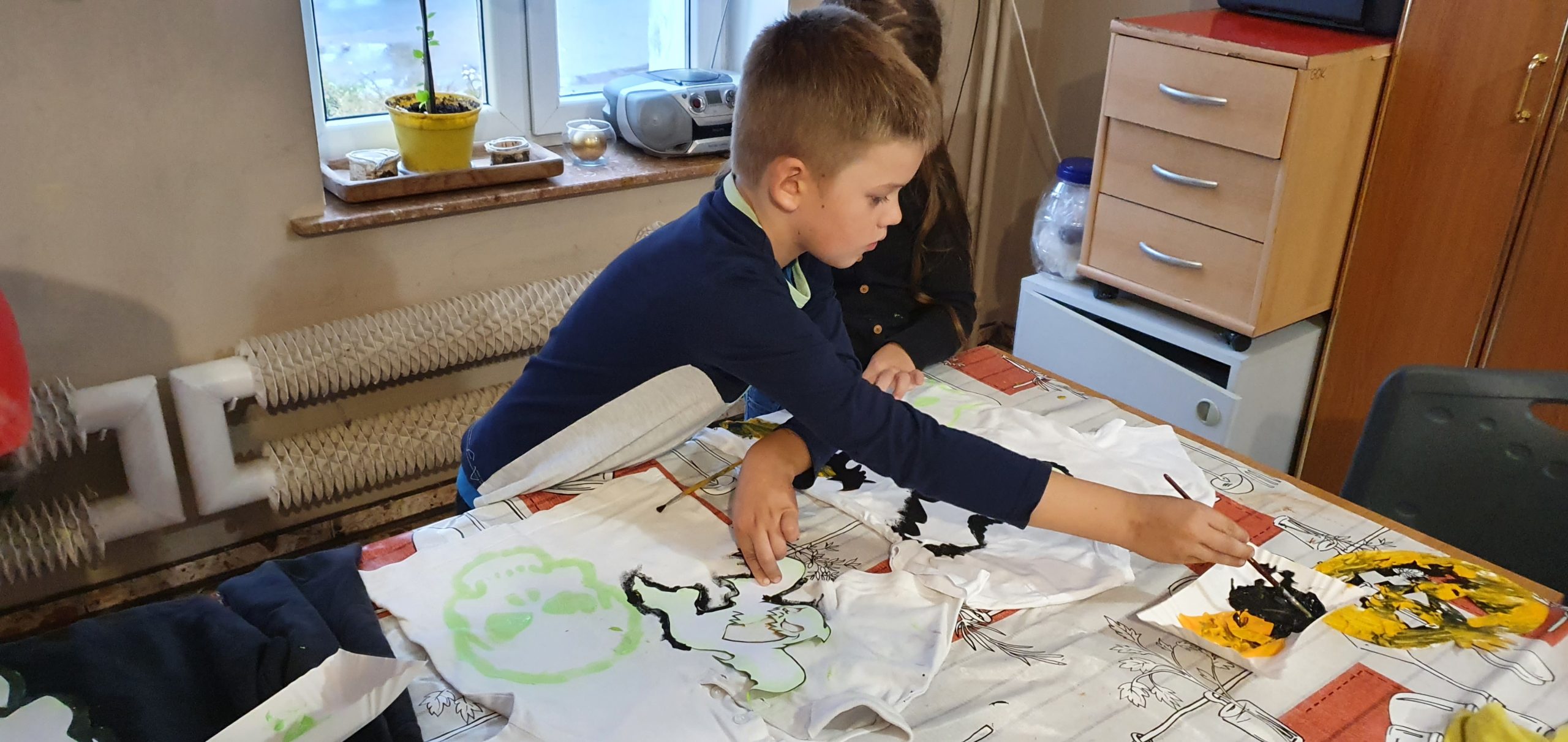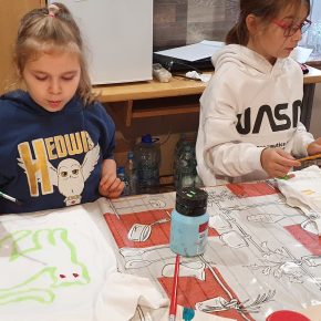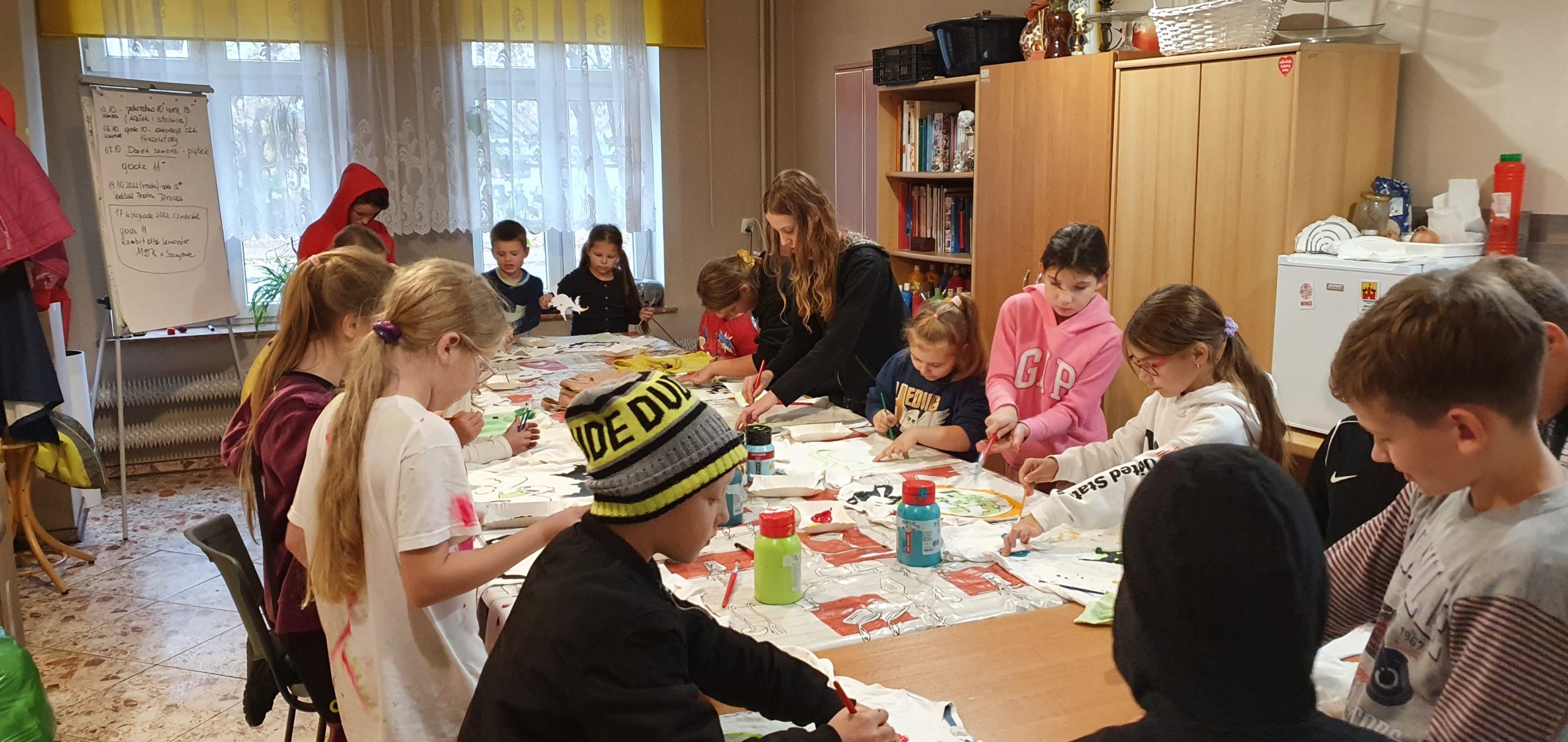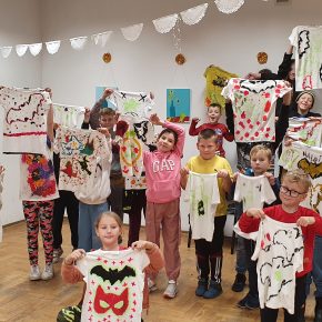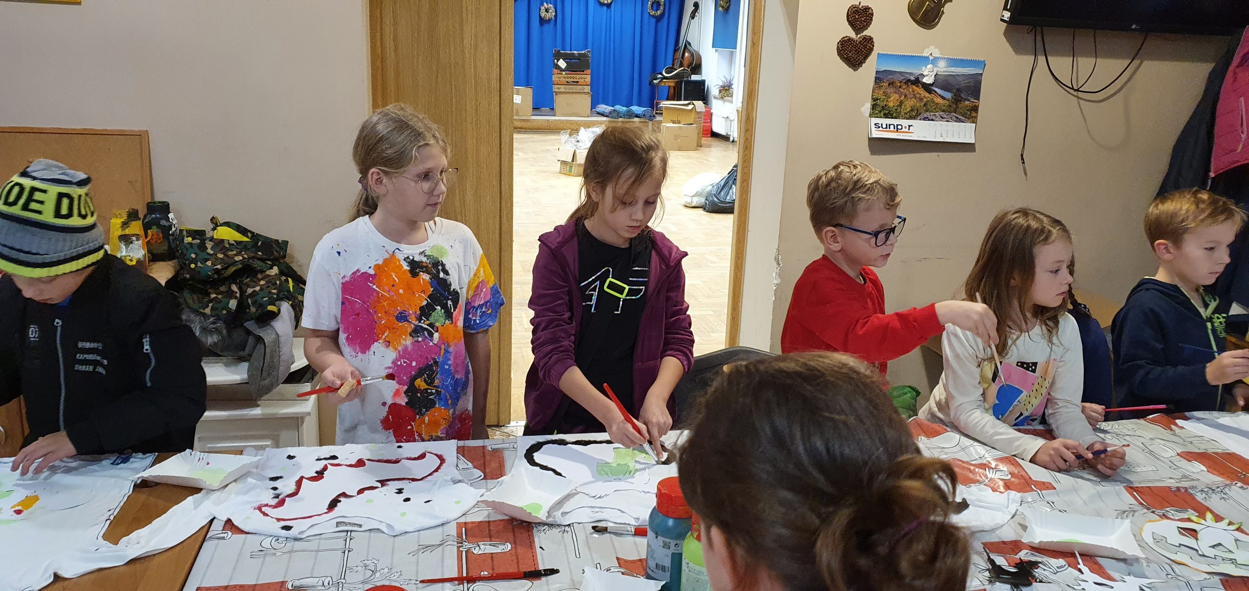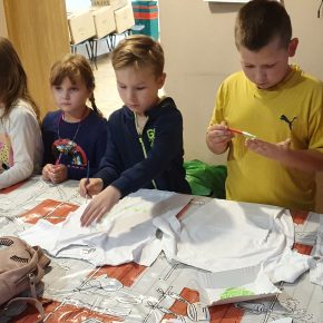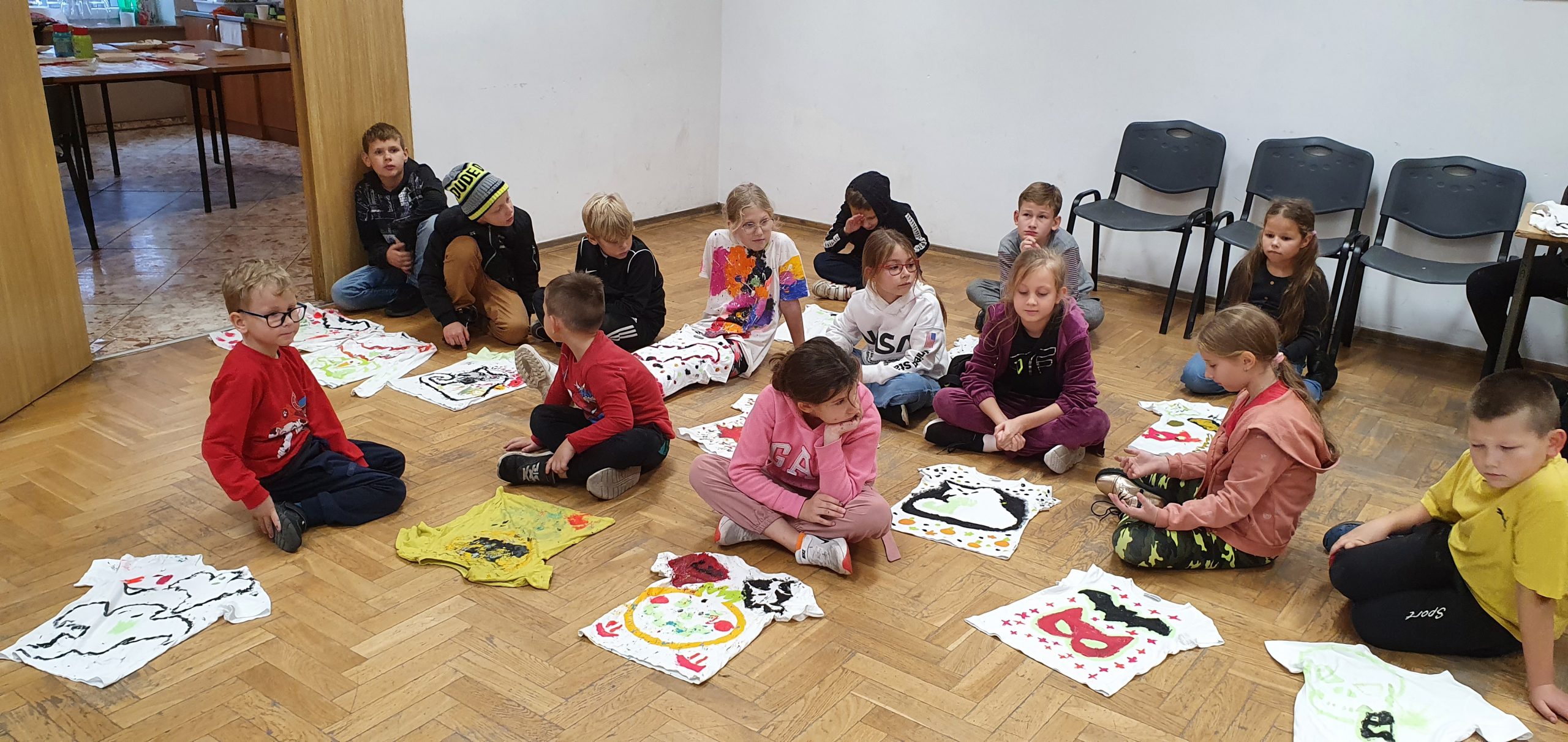 Wczoraj ( 18.10.2022 r.) gościliśmy liczną grupę dzieciaków na kolejnych zajęciach kreatywnych. Tym razem malowaliśmy koszulki farbami świecącymi w ciemności. Koszulki wykorzystamy na kolejnych zajęciach, na które już dziś serdecznie zapraszamy.