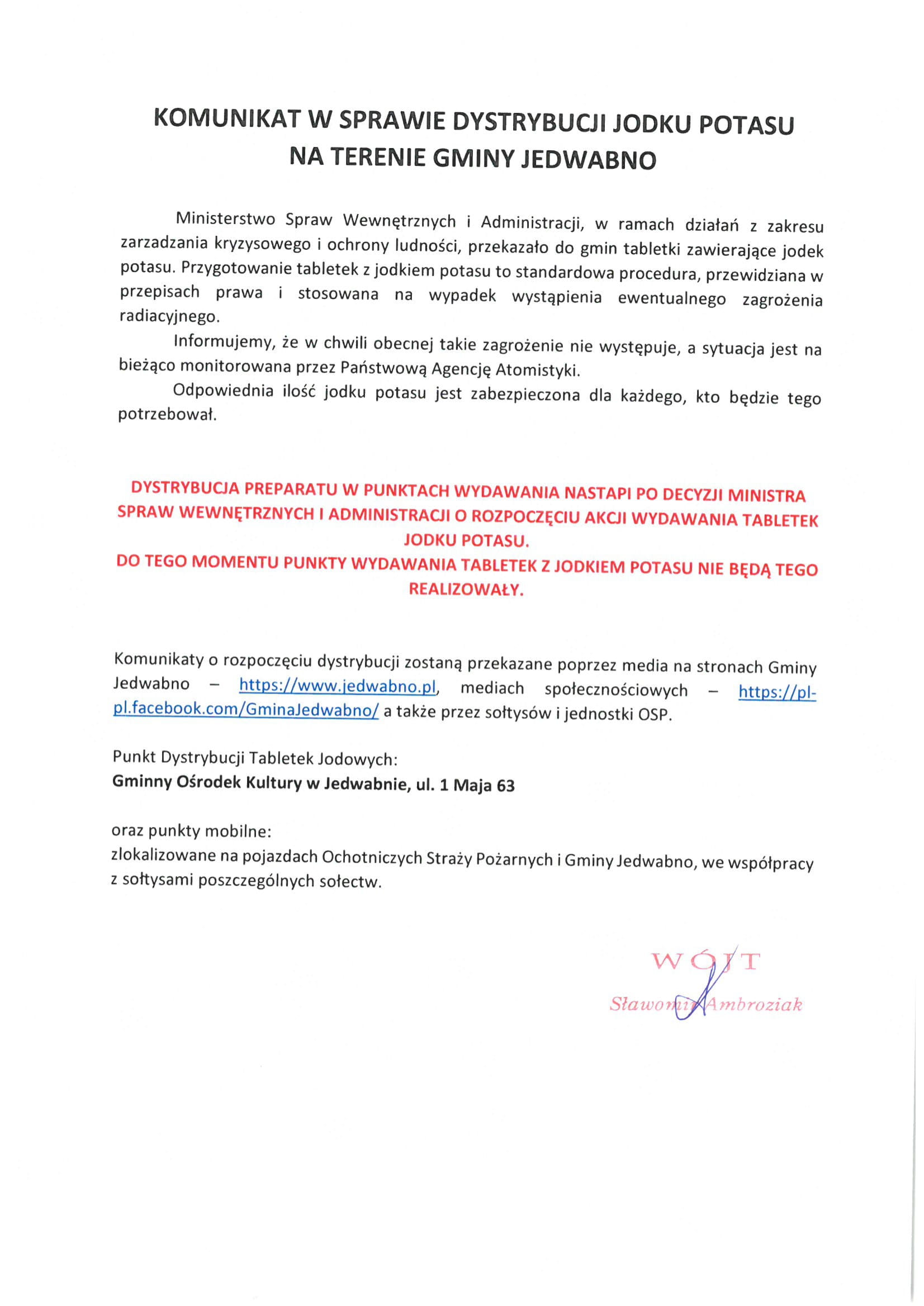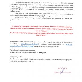 W załączeniu komunikat Wójta Gminy Jedwabno. Bardzo prosimy o zapoznanie się z treścią.