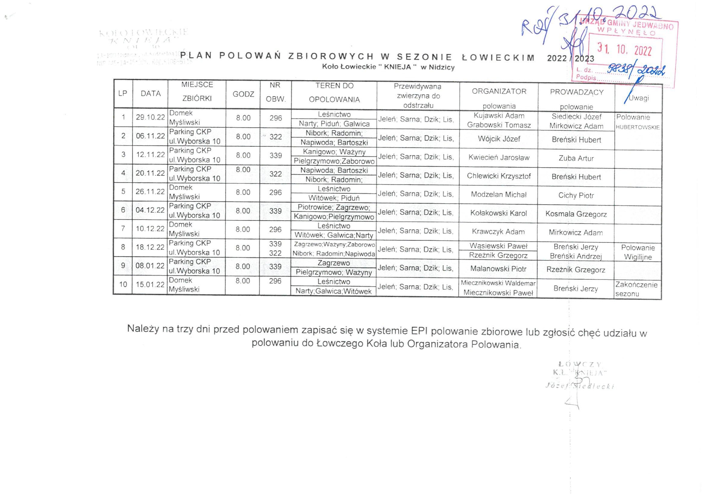 Plan polowań zbiorowych: