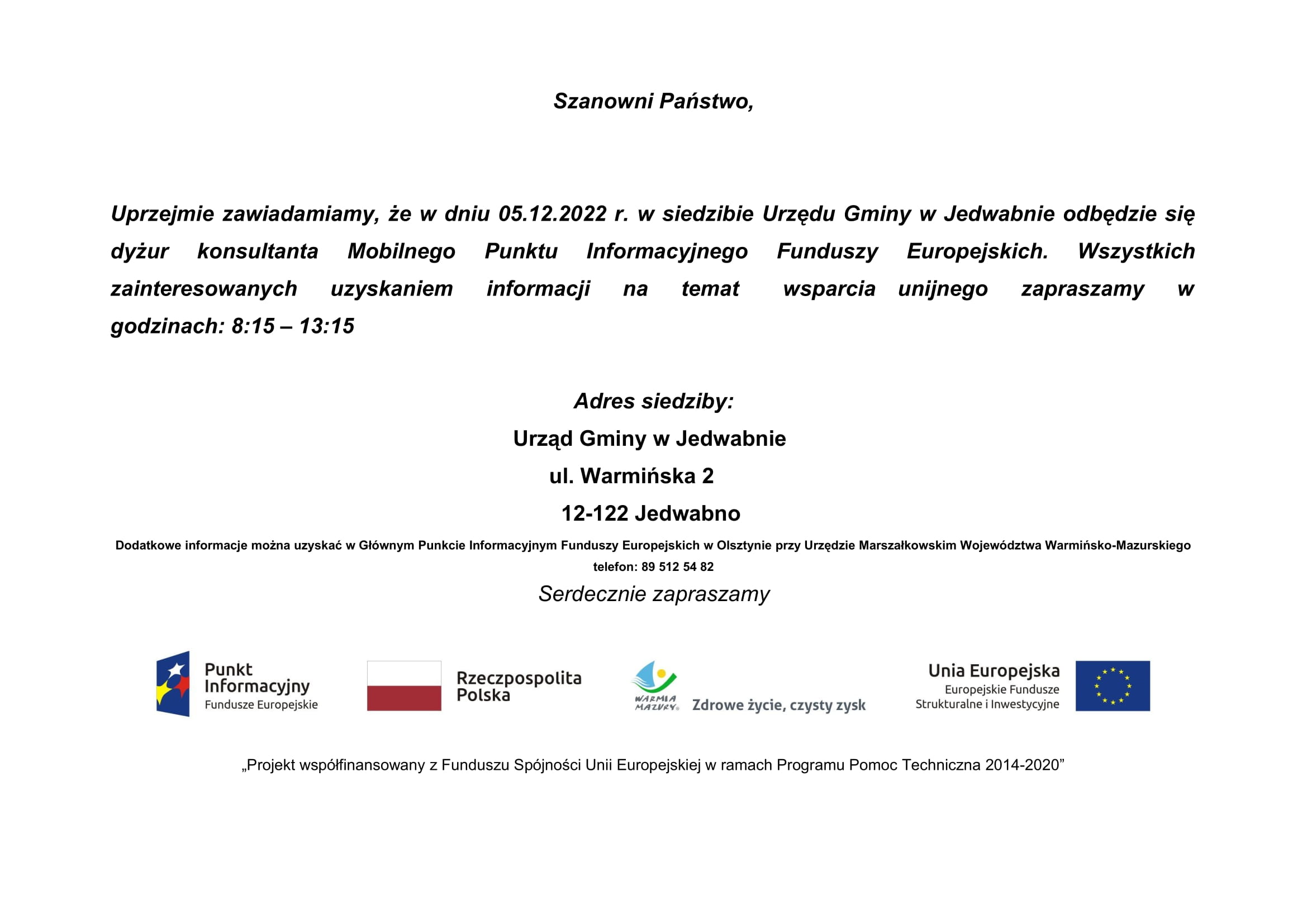 3. Dyżur konsultanta Mobilnego Punktu Informacyjnego Funduszy Europejskich.