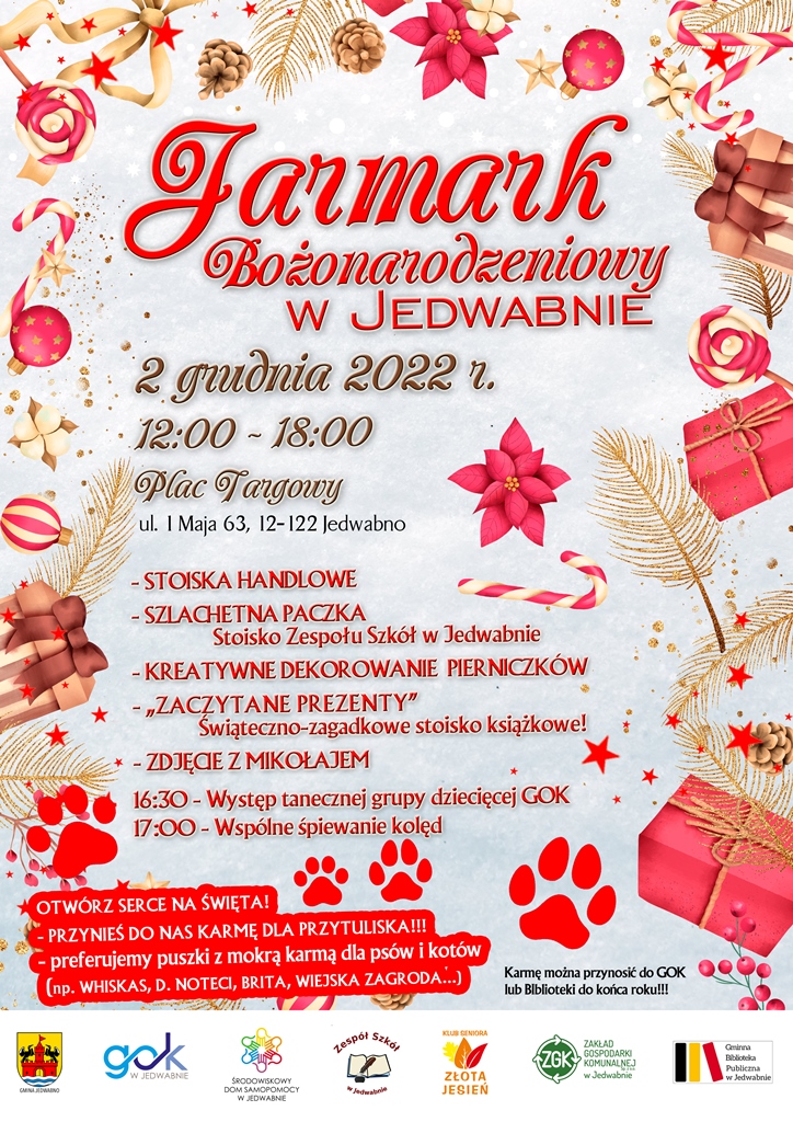 Już w przyszły piątek tj. 02.12.2022 r. Zapraszamy na Jarmark Bożonarodzeniowy, który odbędzie się na Placu Targowym przy Gminnym Ośrodku Kultury. Szczegóły na plakacie.