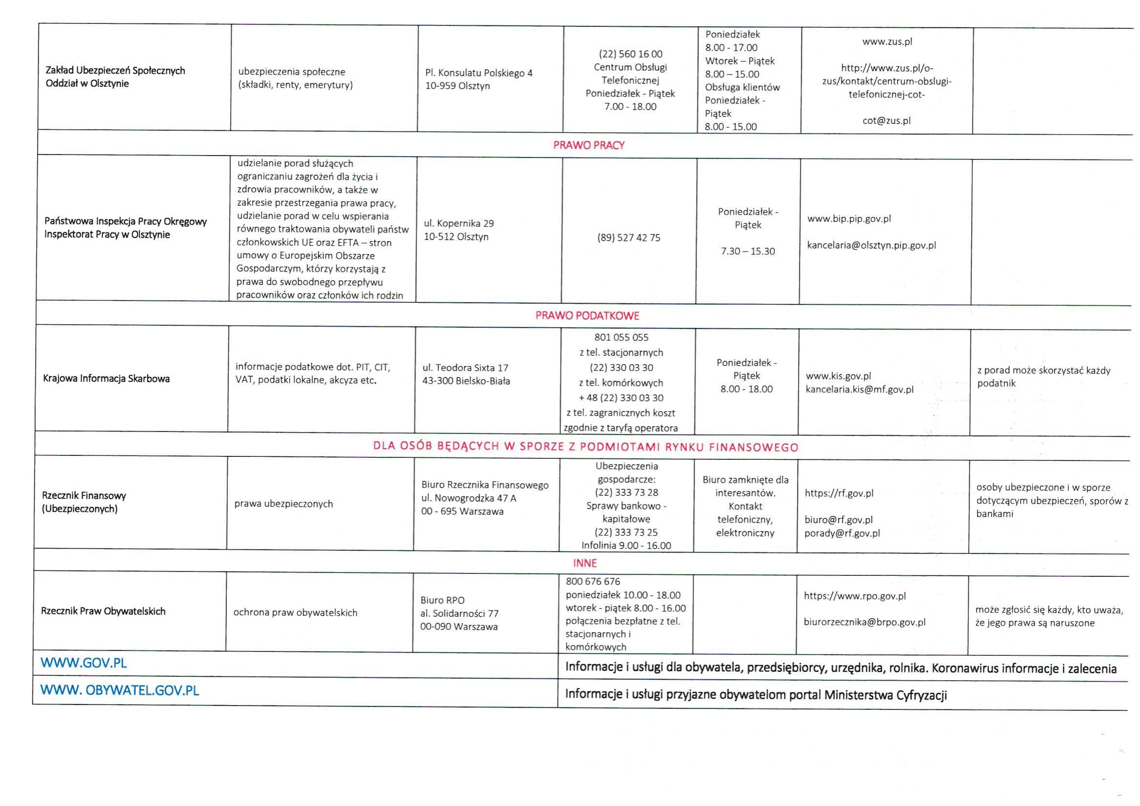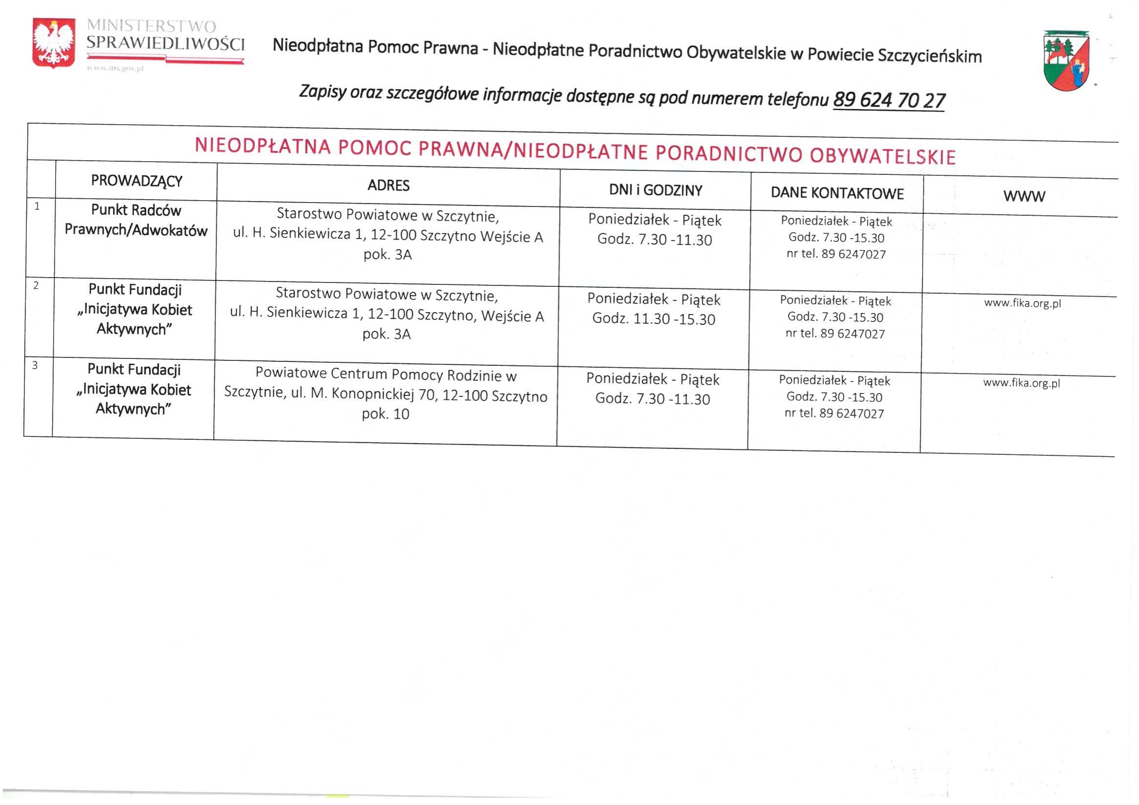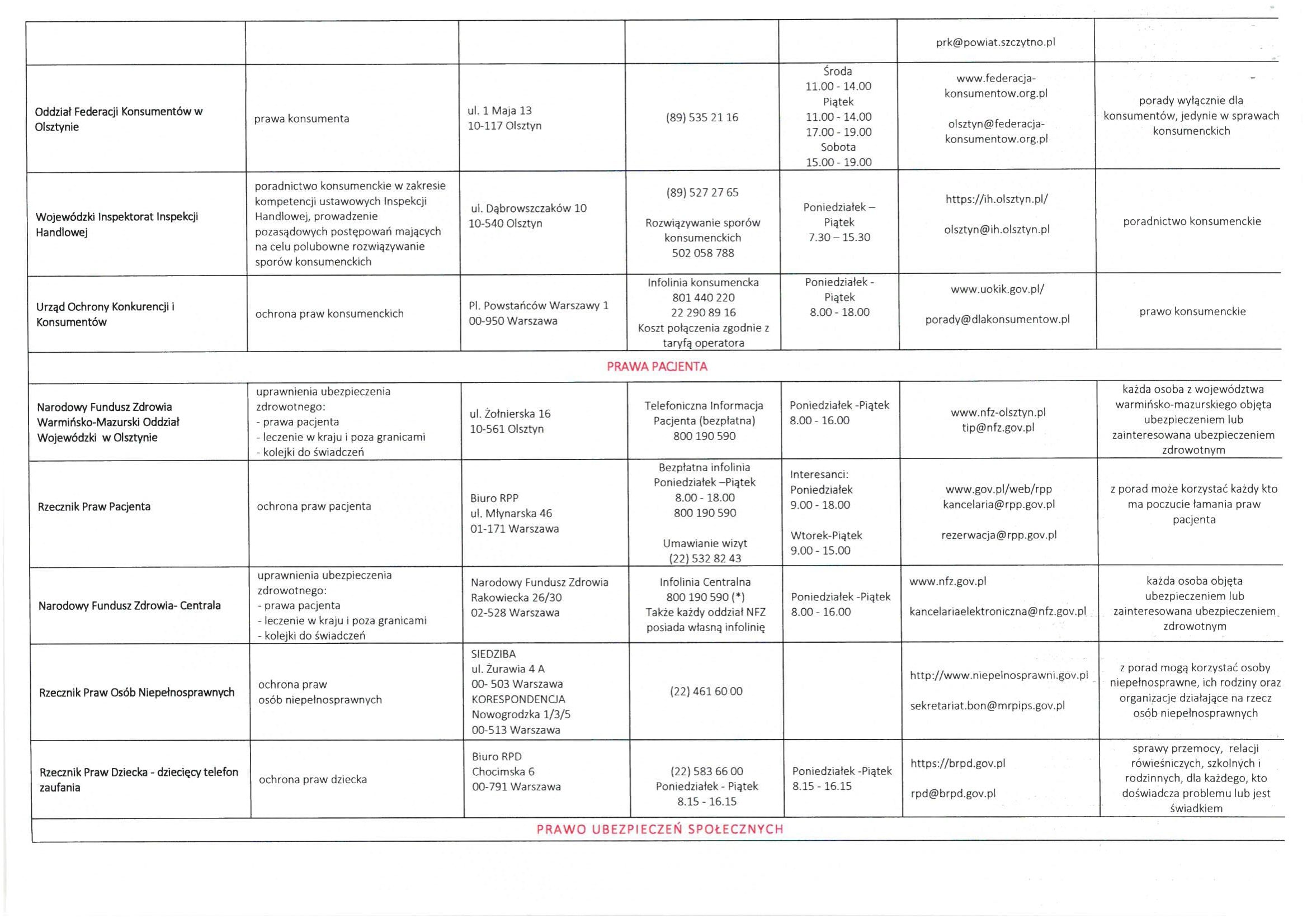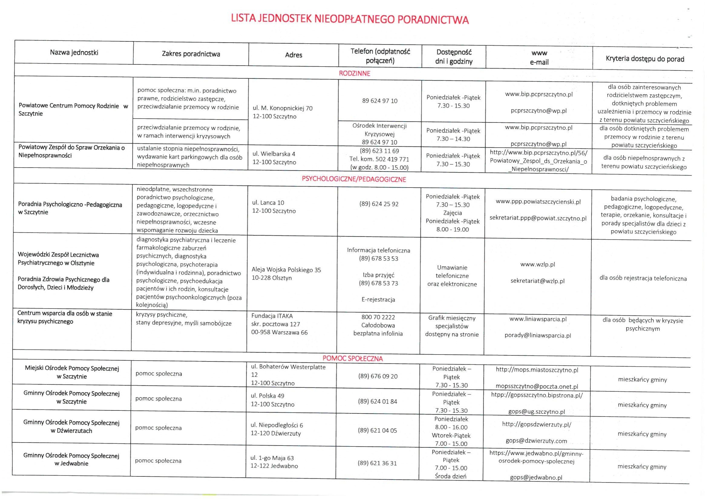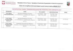 LISTA JEDNOSTEK NIEODPŁATNEGO PORADNICTWA