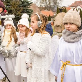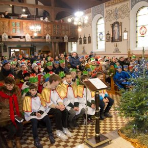 Pasterze czuwający przy ognisku śpiewali kolędy . Po złożeniu pokłonu Świętej Rodzinie przez przybyłe barwne orszaki : Europejski , Azjatycki i Afrykański , Królowie : Kacper , Melchior i Baltazar złożyli dary .