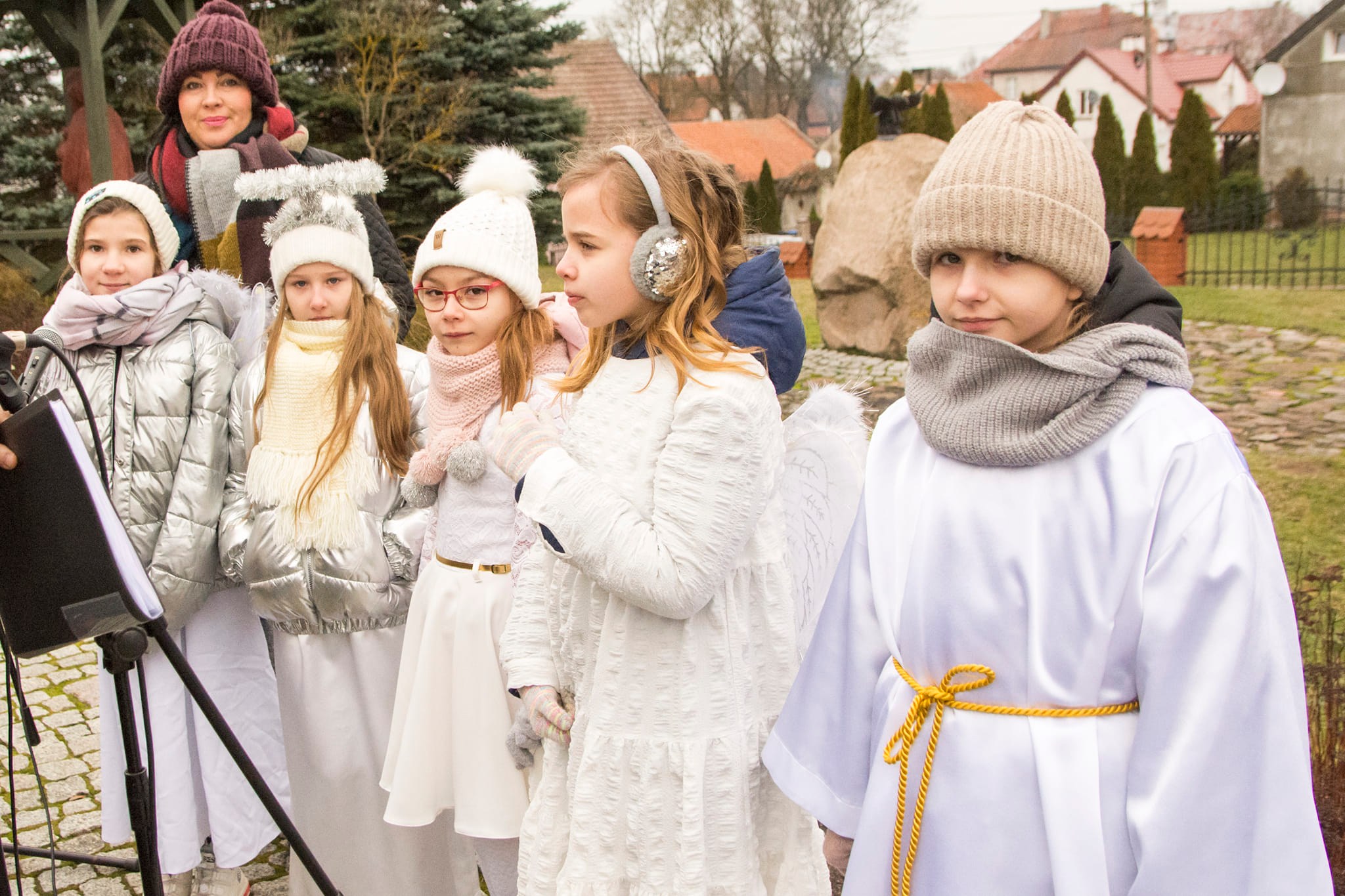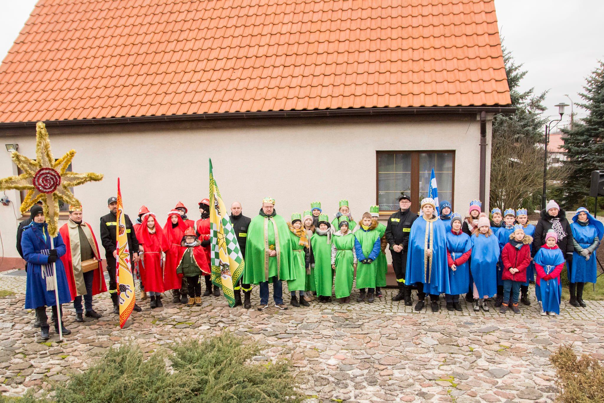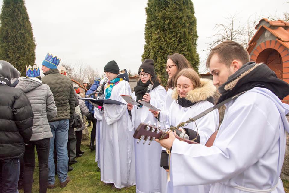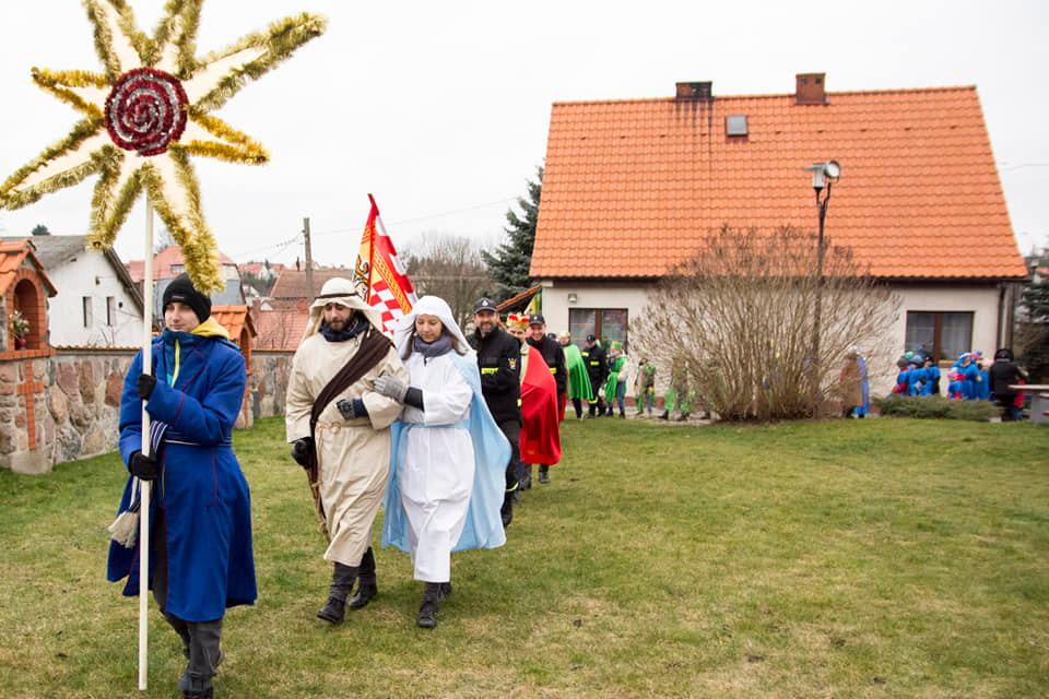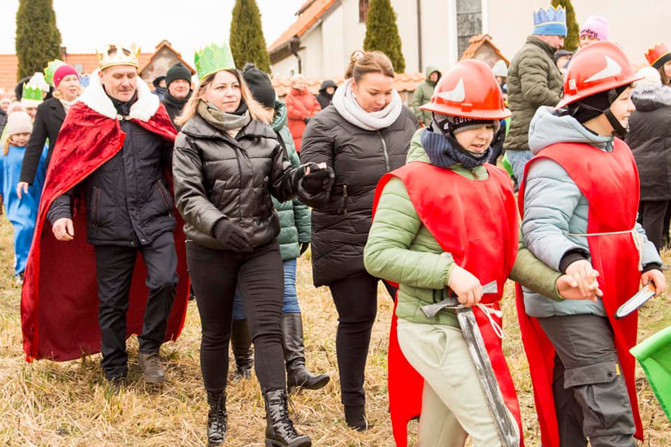 Hasło tegorocznego orszaku brzmiało ,,Niech prowadzi nas gwiazda’’ i dlatego też nie zabrakło śpiewania pięknych kolęd, pod przewodnictwem chóru „Cantate Deo” oraz Zespołu Młodzieżowego ,,Umocnieni Duchem’’. Po Mszy Świętej uczestnicy Orszaku mogli zobaczyć wspaniale przygotowane sceny – Mansjony. „Gospoda” przygotowana przez GOK Jedwabno , „Walka dobra ze złem” przez Szkołę Podstawową w Jedwabnie. Przy wejściu przez ,,Bramę anielską’’ powitał nas śpiewem zespół śpiewających Aniołów