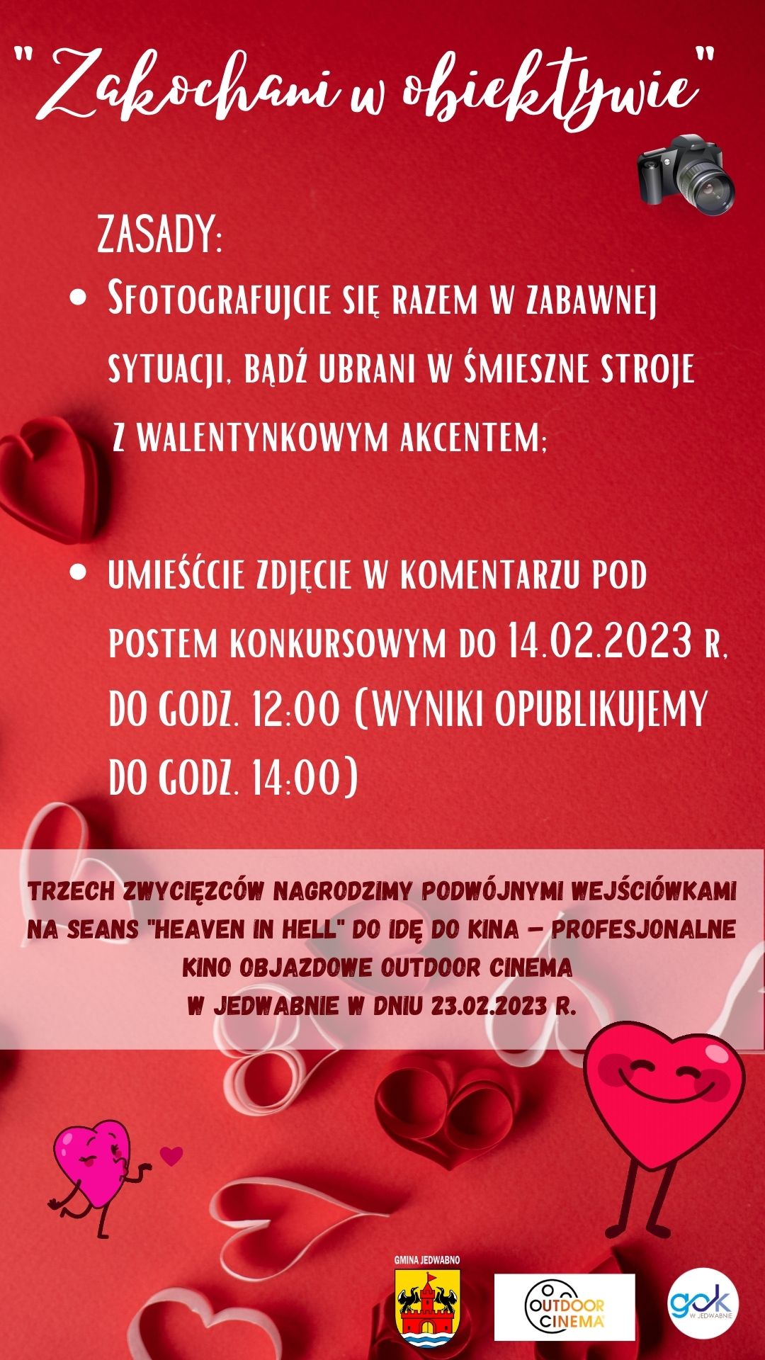 Gminny Ośrodek Kultury w Jedwabnie oraz Idę do kina w Jedwabnie zaprasza do walentynkowej zabawy pn. „Zakochani w obiektywie” – bezpośredni link – KLIKNIJ TUTAJ