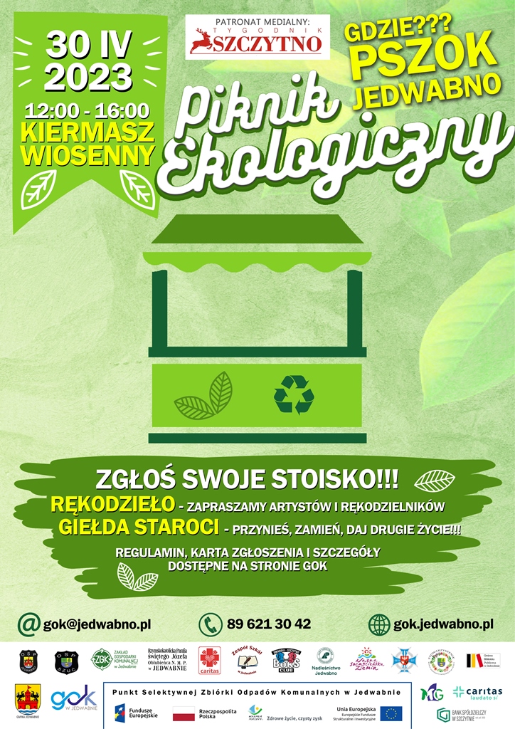 Zapraszamy do zgłaszania stoisk na Piknik Ekologiczny, który odbędzie się 30.04.2023 r. w PSZOK Jedwabno „Drugie życie rzeczy”