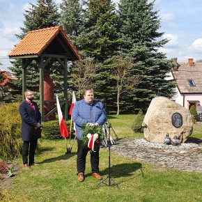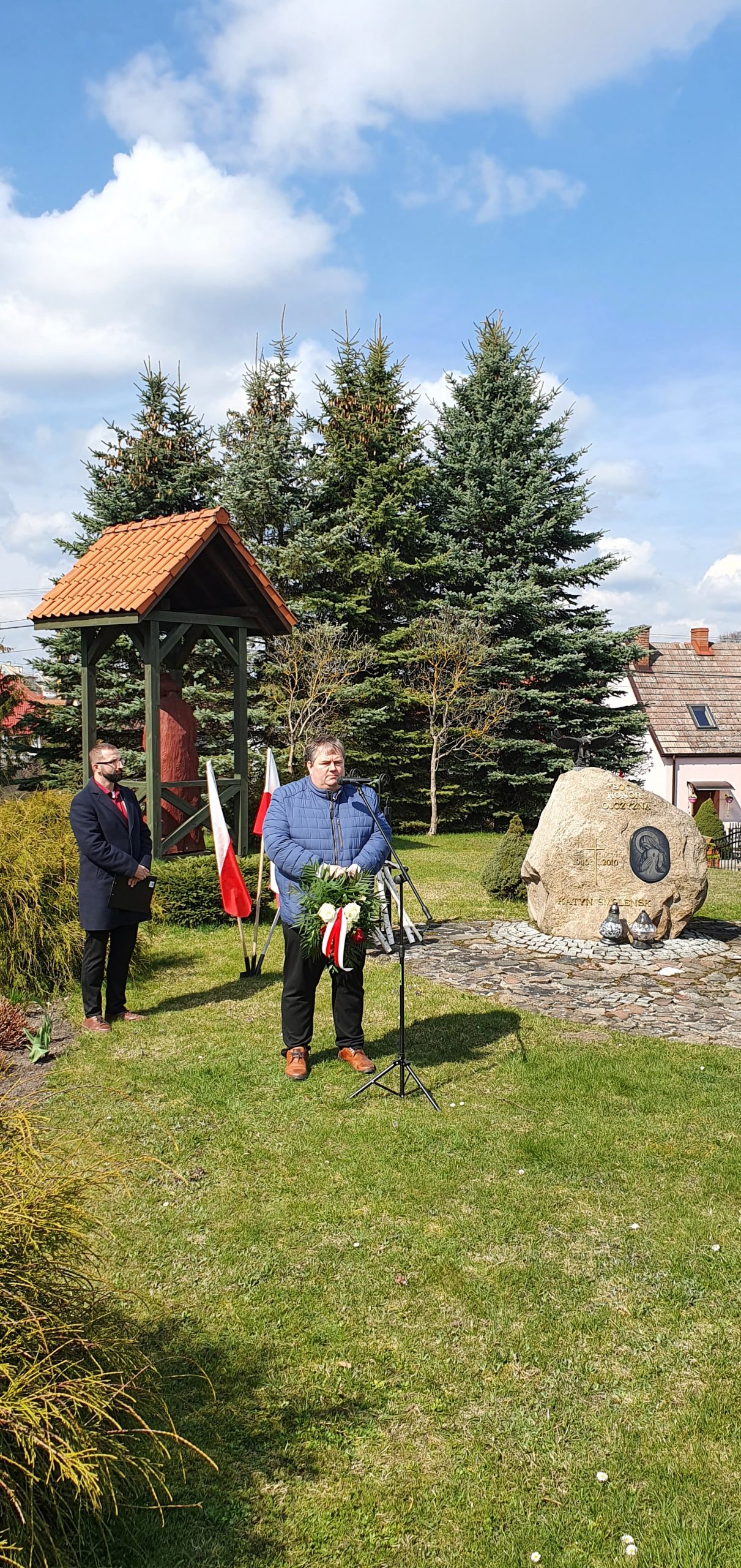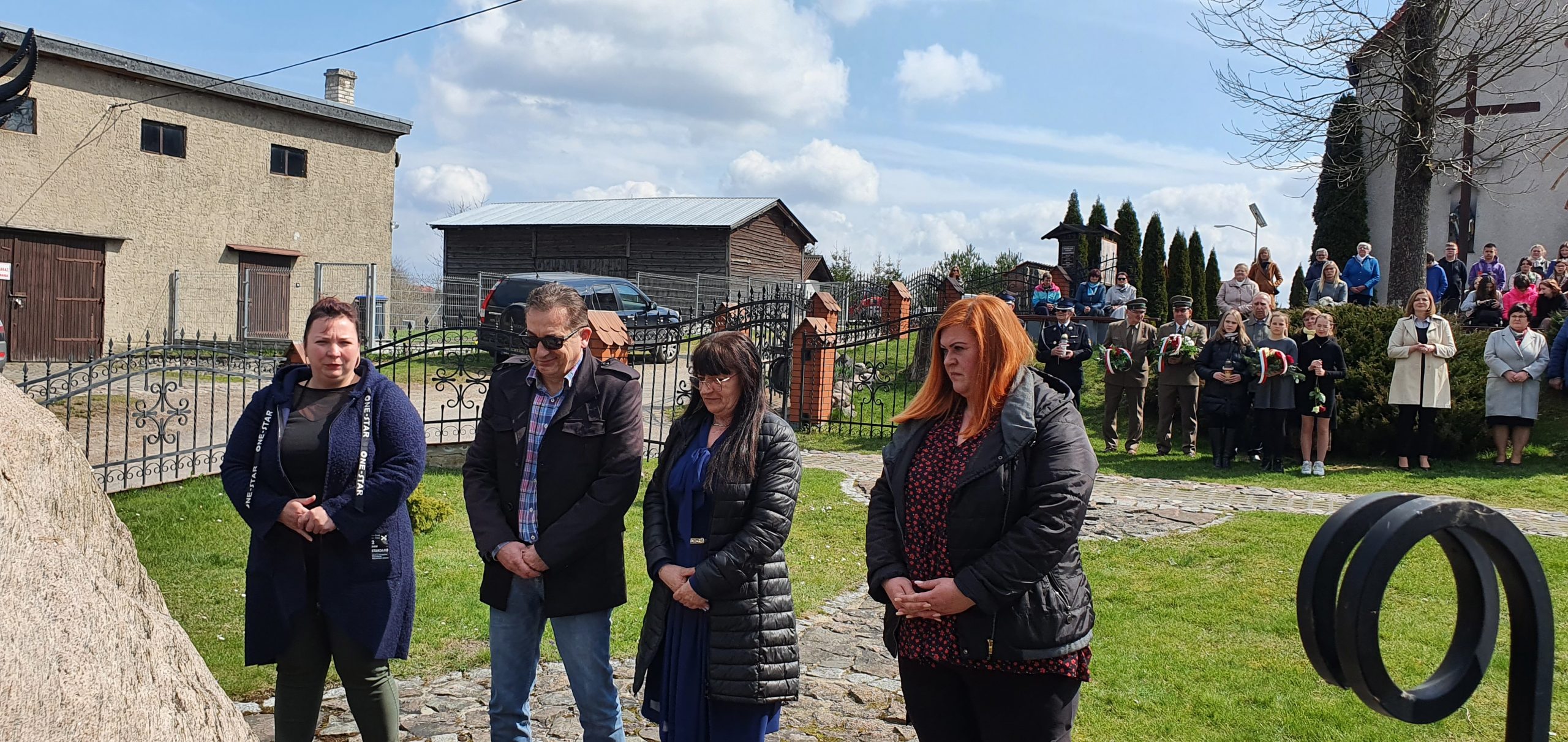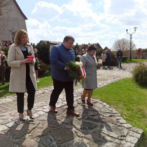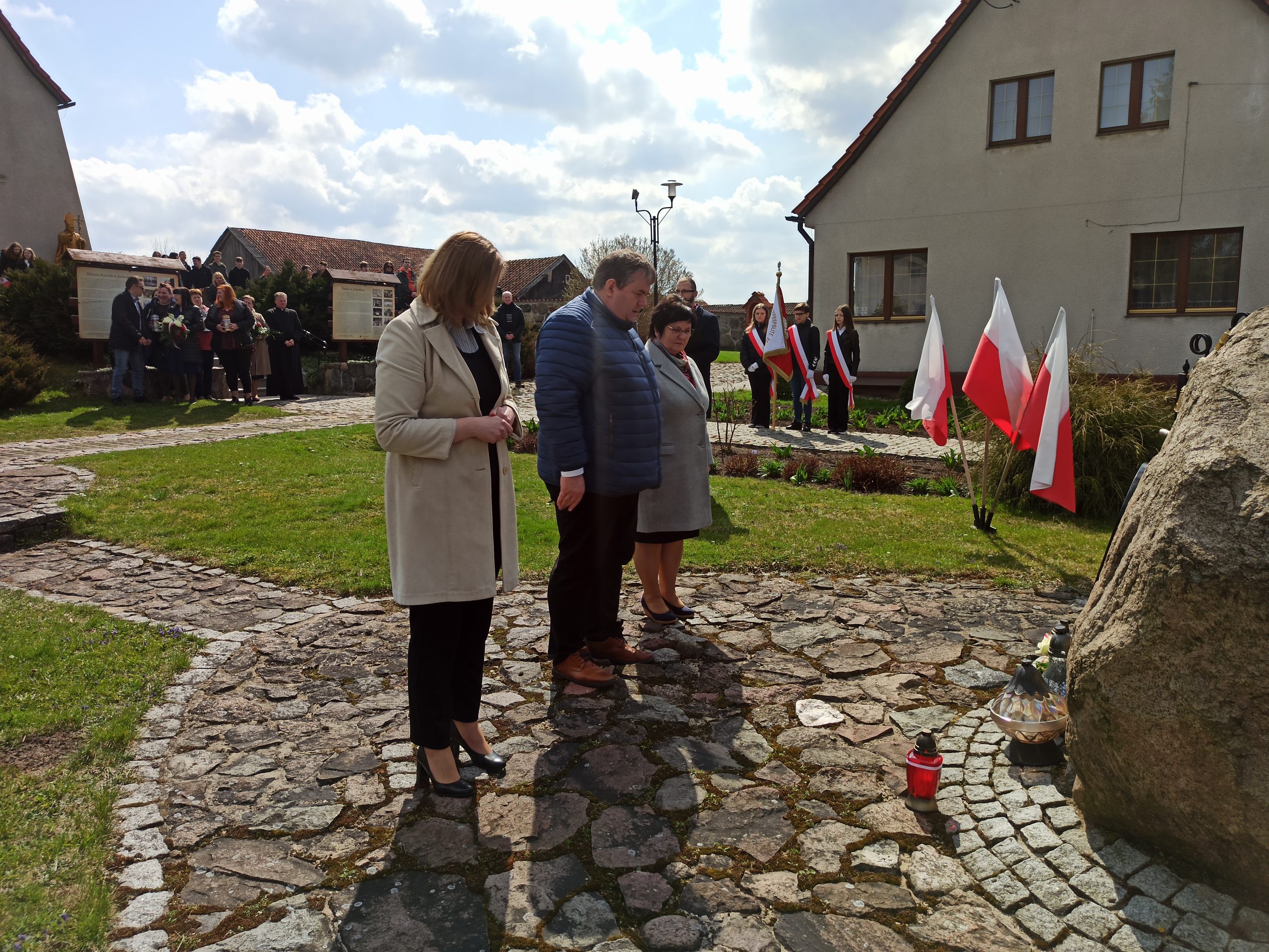 - Delegacja Urzędu Gminy Jedwabno składająca wiązanki i znicze pod pomnikiem „Katyń – Smoleńsk”
