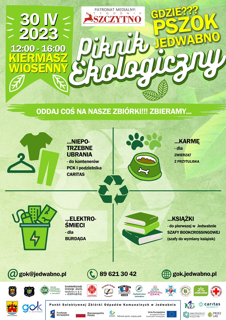 W dzisiejszych czasach coraz więcej ludzi zwraca uwagę na ekologię i ochronę środowiska. Jednym z aspektów tej problematyki jest odpowiedzialne postępowanie z odpadami. Dlatego zachęcamy do włączenia się w Piknik Ekologiczny, który odbędzie się 30 kwietnia 2023 r. na PSZOK w Jedwabnie, gdzie będą prowadzone zbiórki różnych przedmiotów.