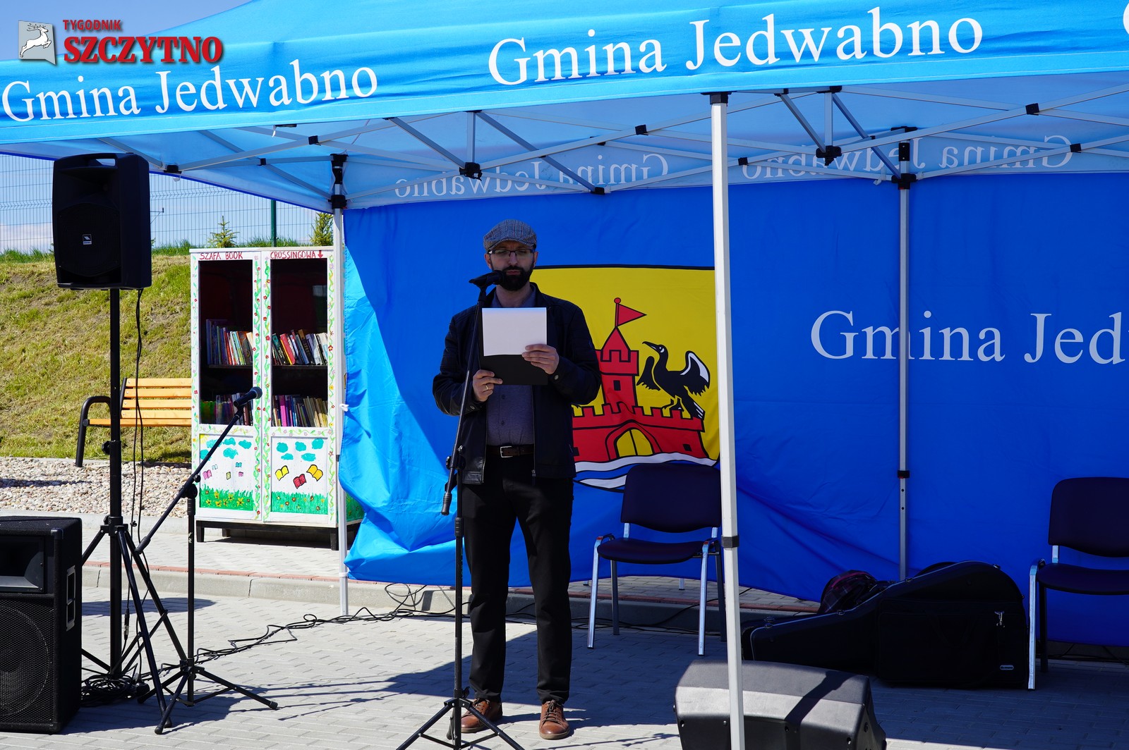 Przybyłych gości powitał Adam Cudak – Dyrektor Gminnego Ośrodka Kultury w Jedwabnie, następnie głos zabrali: Pani Jolanta Drężek – Sekretarz Gminy Jedwabno, Pani Elżbieta Brzóska – Przewodnicząca Rady Gminy Jedwabno oraz Pani Sylwia Jaskulska – Wicemarszałek Województwa Warmińsko – Mazurskiego i Radna Sejmiku Wojewódzkiego oraz Proboszcz Parafii Rzymskokatolickiej pw. Świętego Józefa Oblubieńca Najświętszej Maryi Panny w Jedwabnie ks. Roman Lompa.