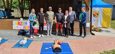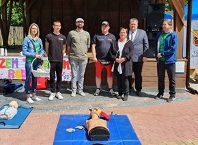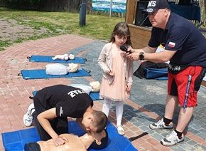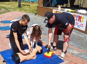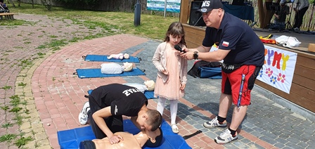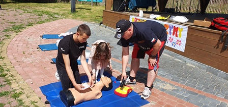 Kolejnym punktem programu był pokaz I Pomocy i obsługi urządzenia AED w wykonaniu OSP Jedwabno oraz Pana Grzegorza Achremczyka z fundacji Autrimpus. Automatyczne defibrylatory zewnętrzne (AED) to urządzenia, które mogą uratować ludzkie życie w przypadku nagłego zatrzymania krążenia, dostarczając wstrząsy elektryczne. W takie urządzenia wyposażony jest oddział Banku Spółdzielczego w Jedwabnie oraz  jednostki Ochotniczej Straży Pożarnej w Jedwabnie, Szuci i Burdągu.