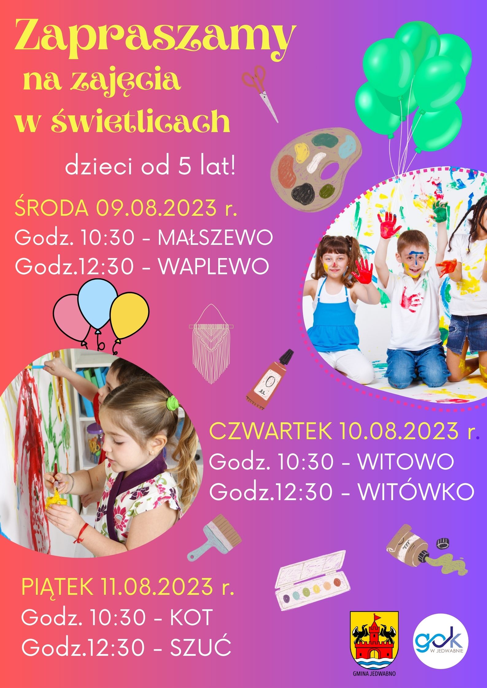 Zapraszamy na zajęcia w świetlicach na terenie Gminy Jedwabno! 🙂