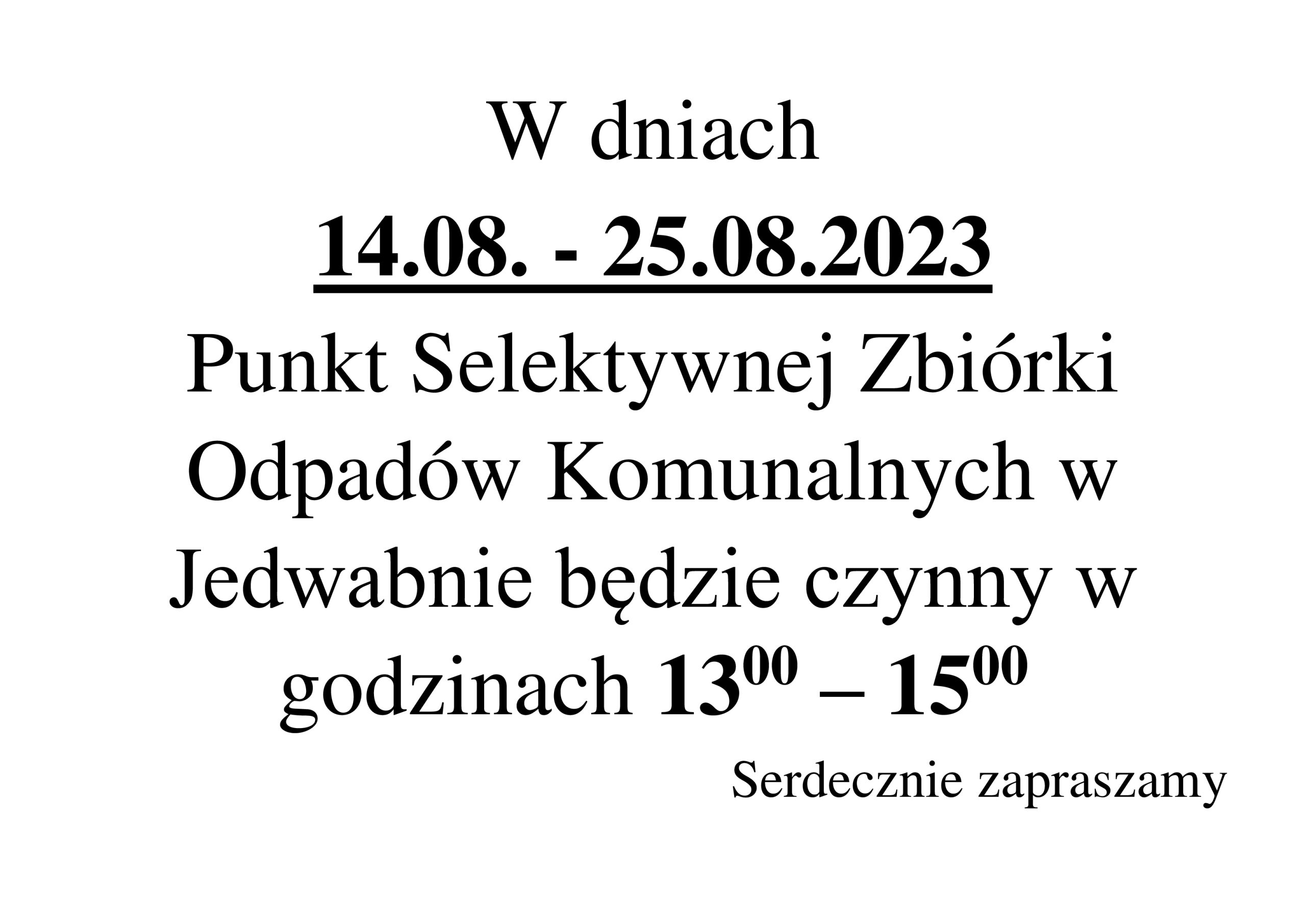 3. Zmiana godzin otwarcia PSZOKu w dniach 14.08-25.08.2023 r.