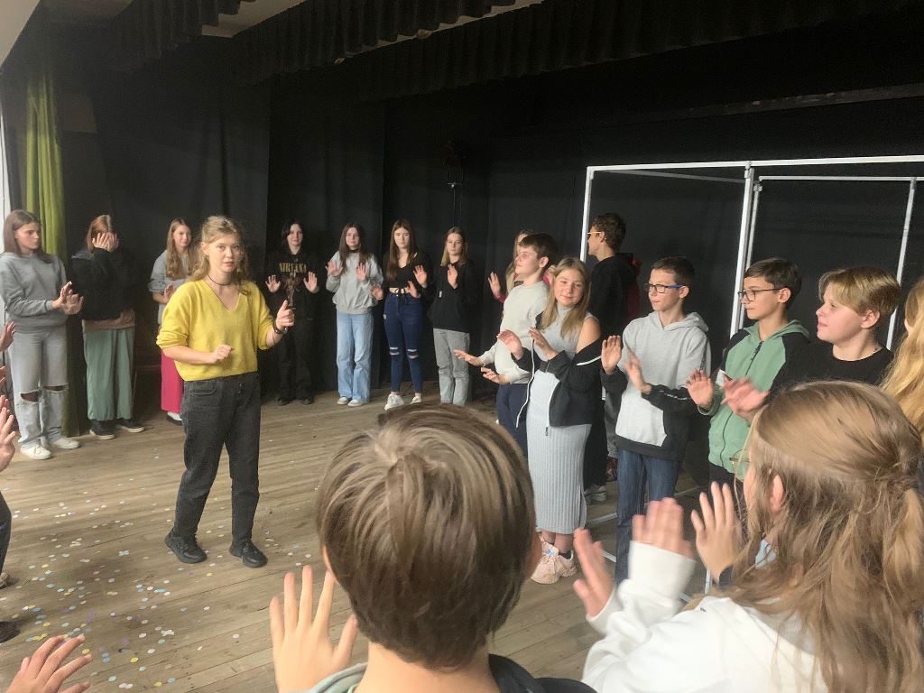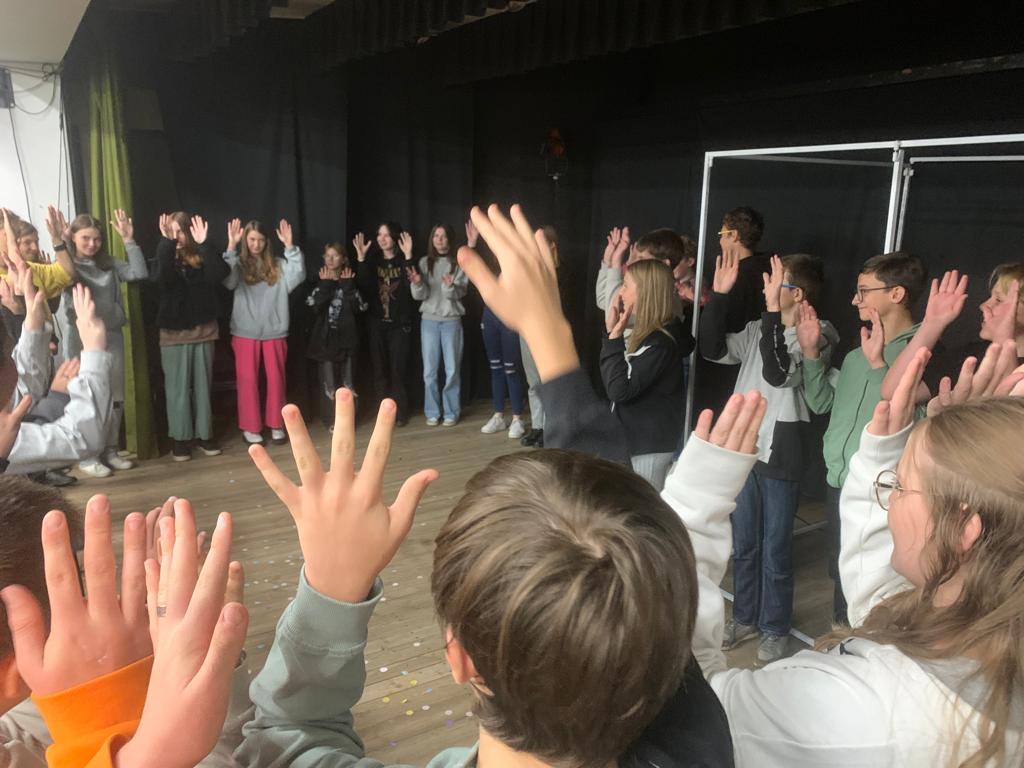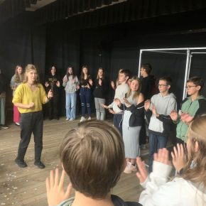 Na zakończenie młodzież wzięła udział w warsztatach prowadzonych przez autorów sztuki.