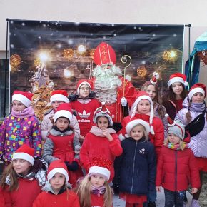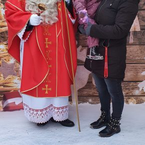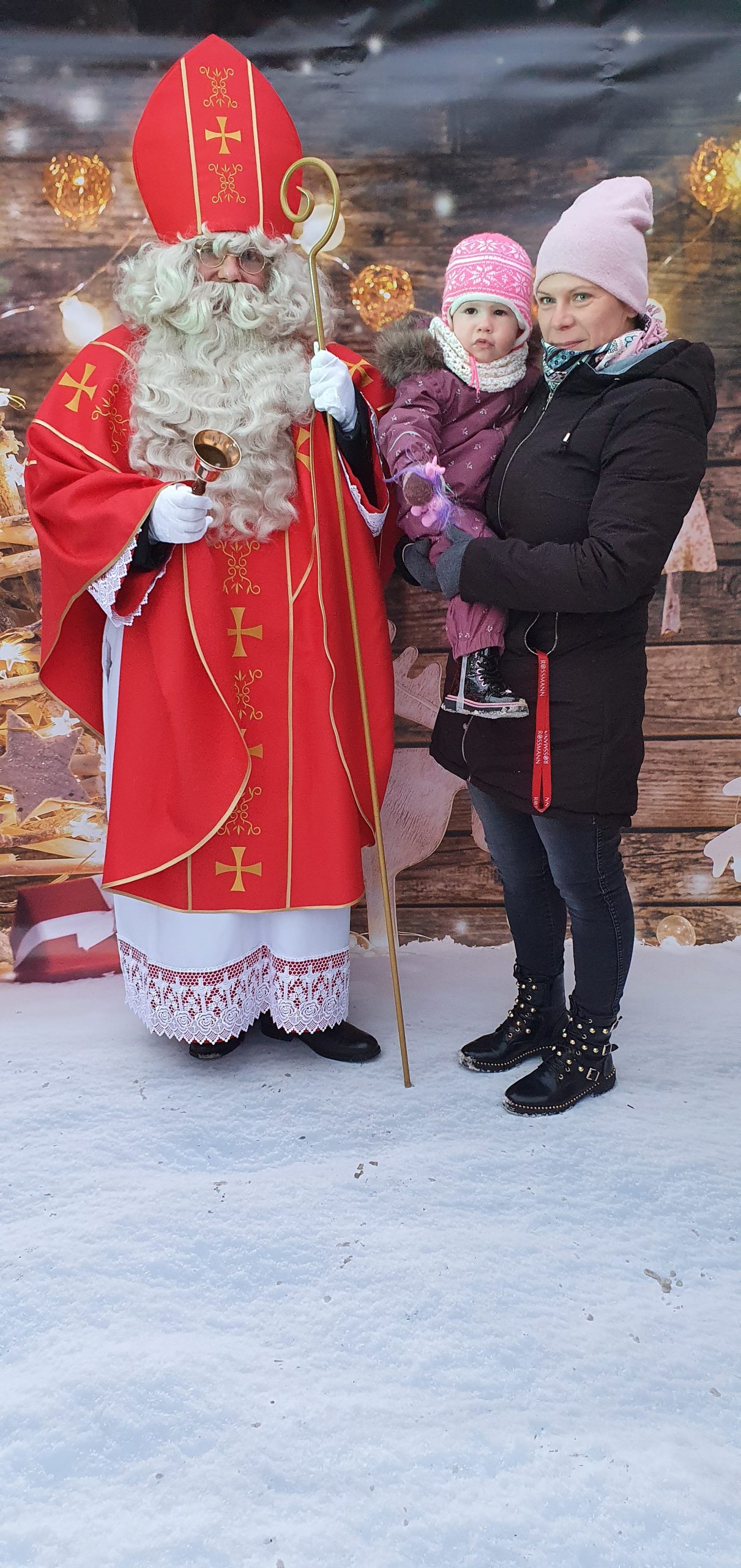 - Mikołaj z dziewczynką i jej mamą