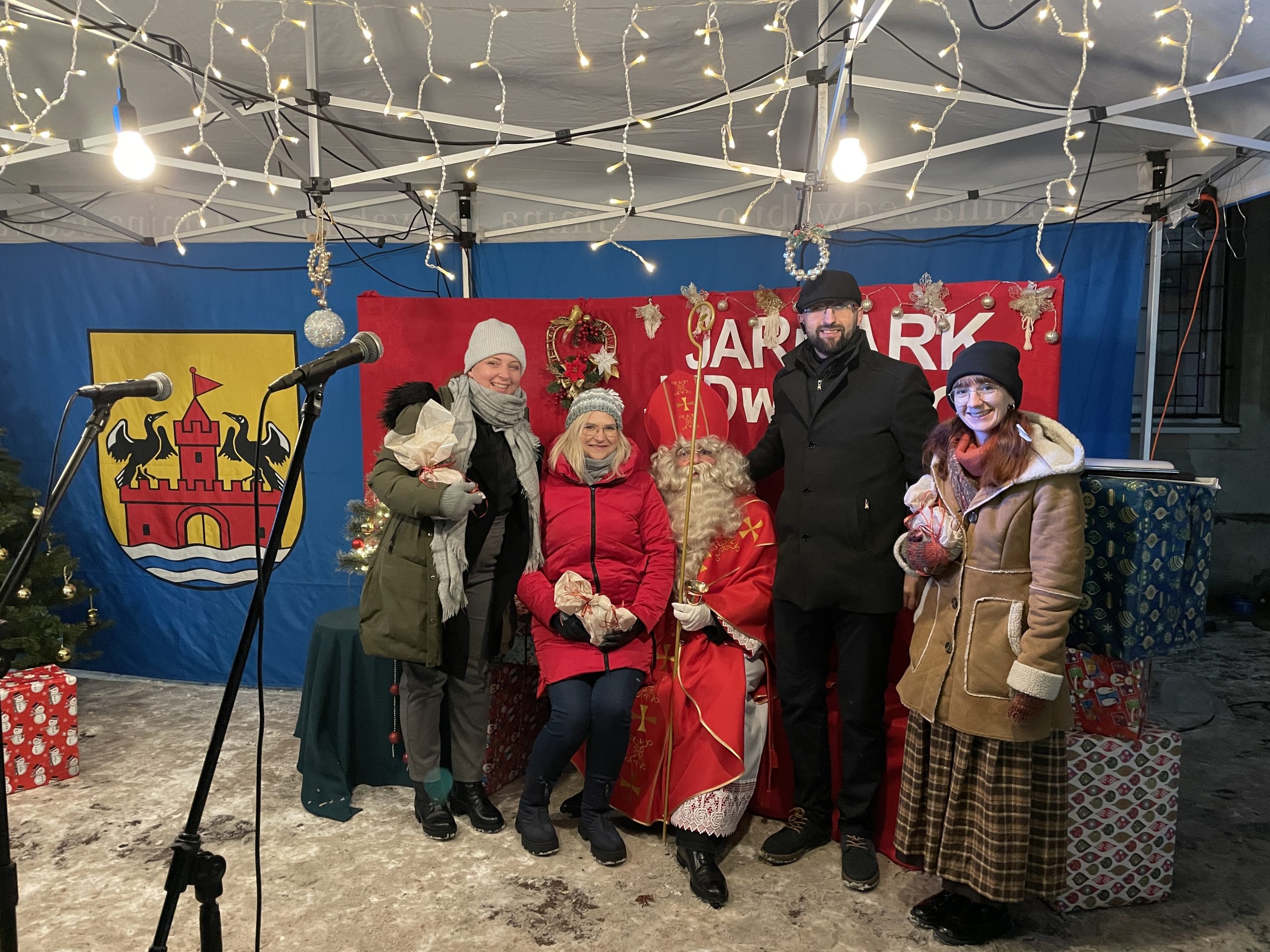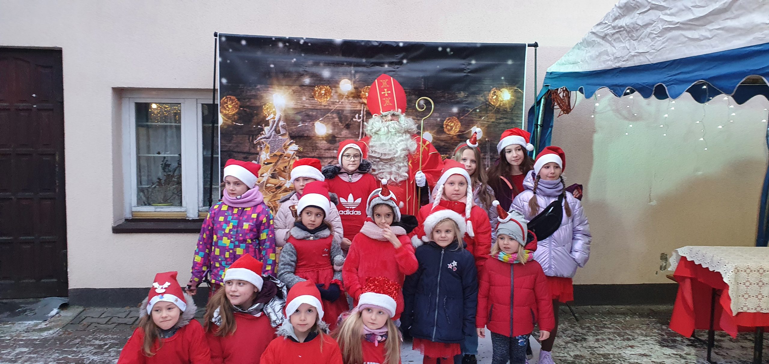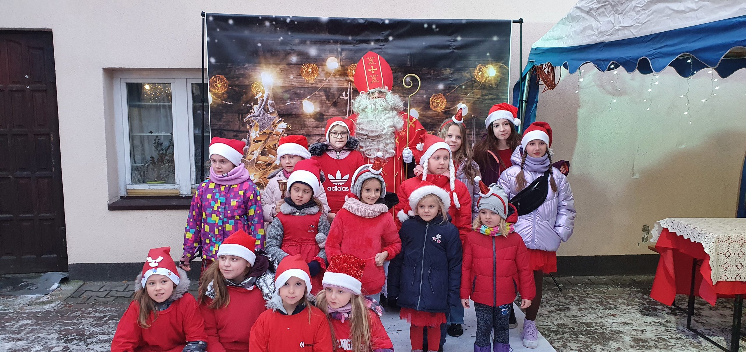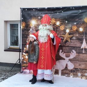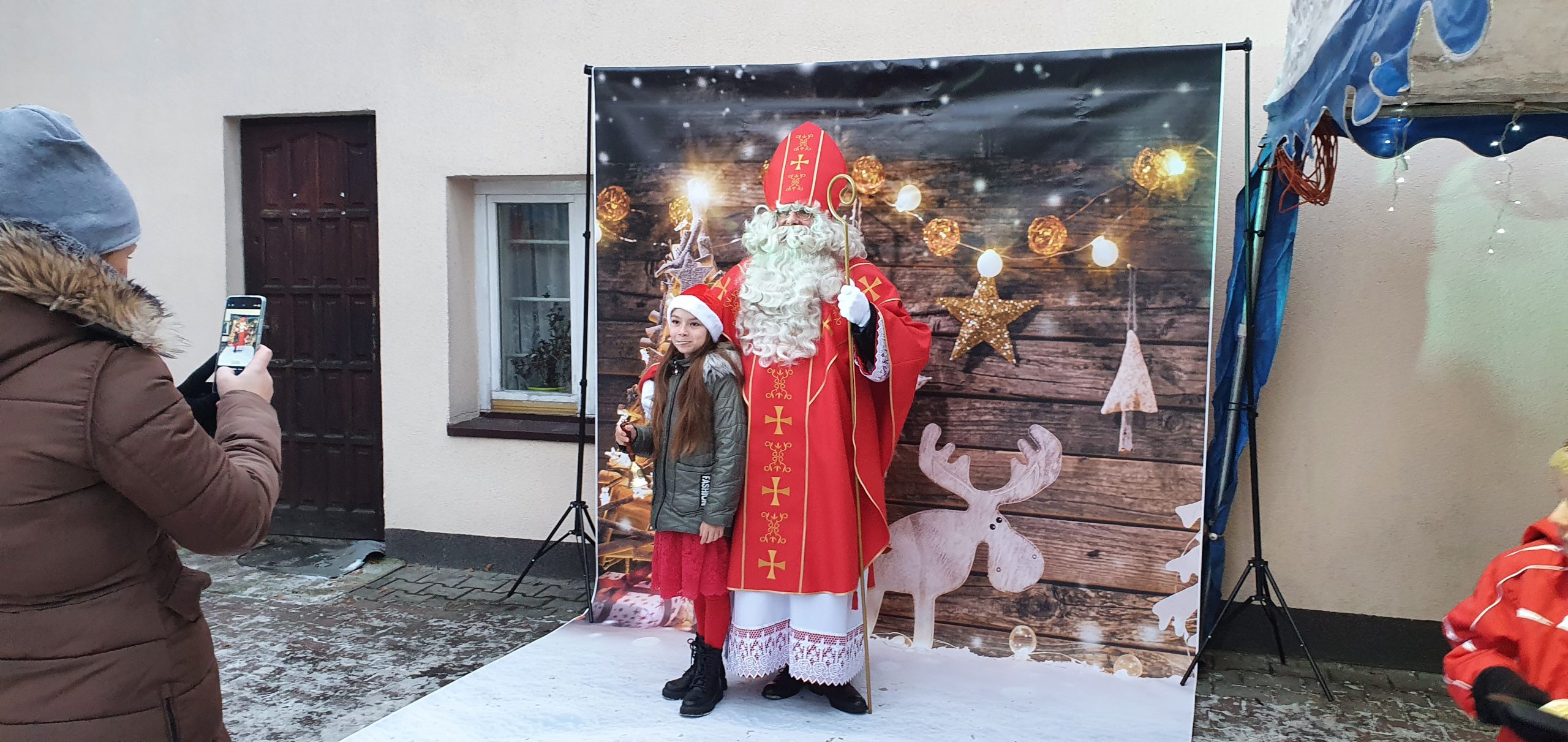 Na przybyłych gości czekały: ścianka do zdjęć z Mikołajem