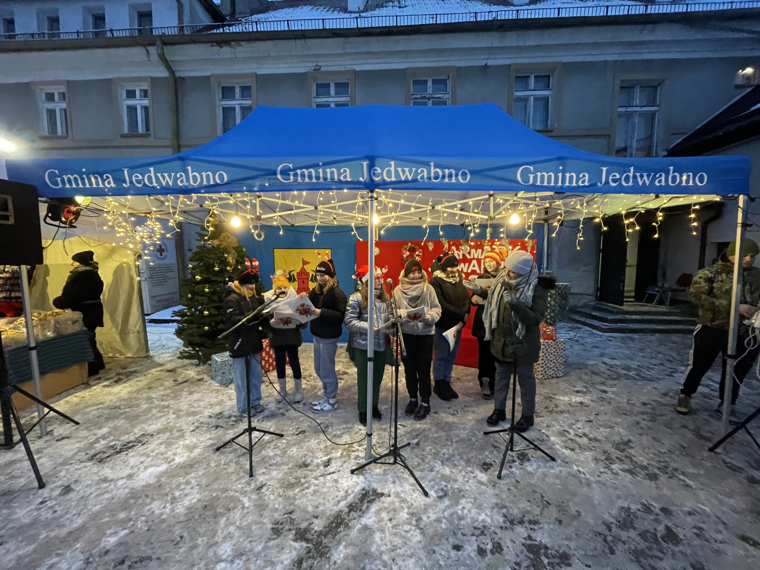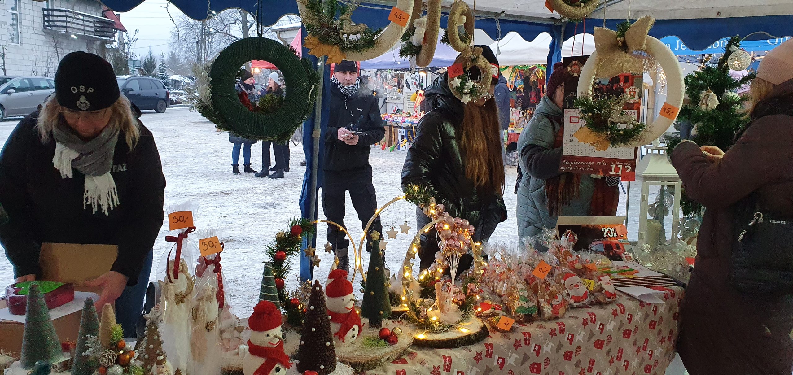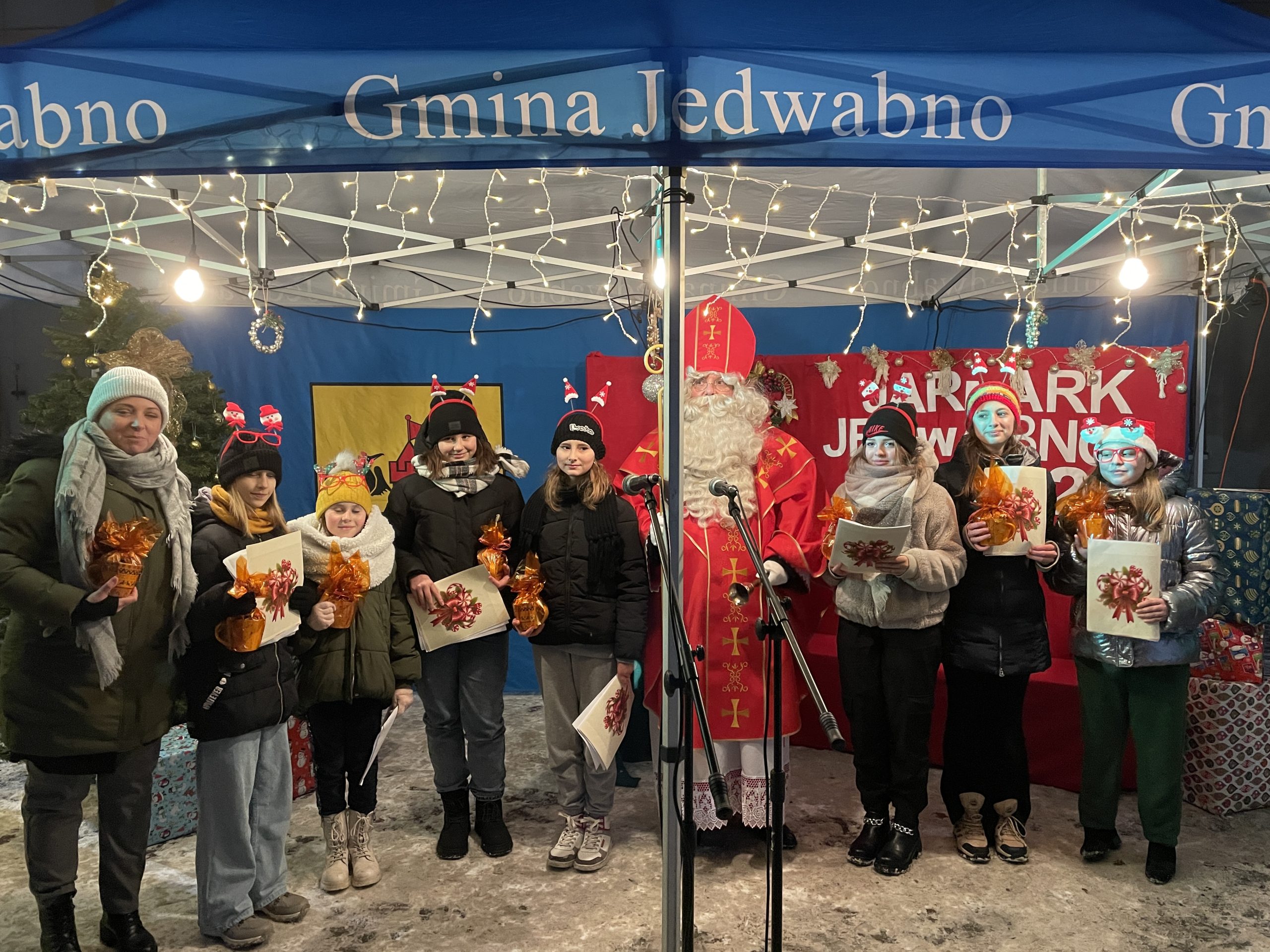 , warsztaty malowania torebek świątecznych, książkowe animacje Gminnej Biblioteki Publicznej w Jedwabnie, stoiska naszych lokalnych rękodzielników, stoiska z miodem i wędlinami, stoisko kulinarne Klubu Seniora „Złota Jesień” oraz Gminnego Koła Gospodyń Wiejskich w Jedwabnie.