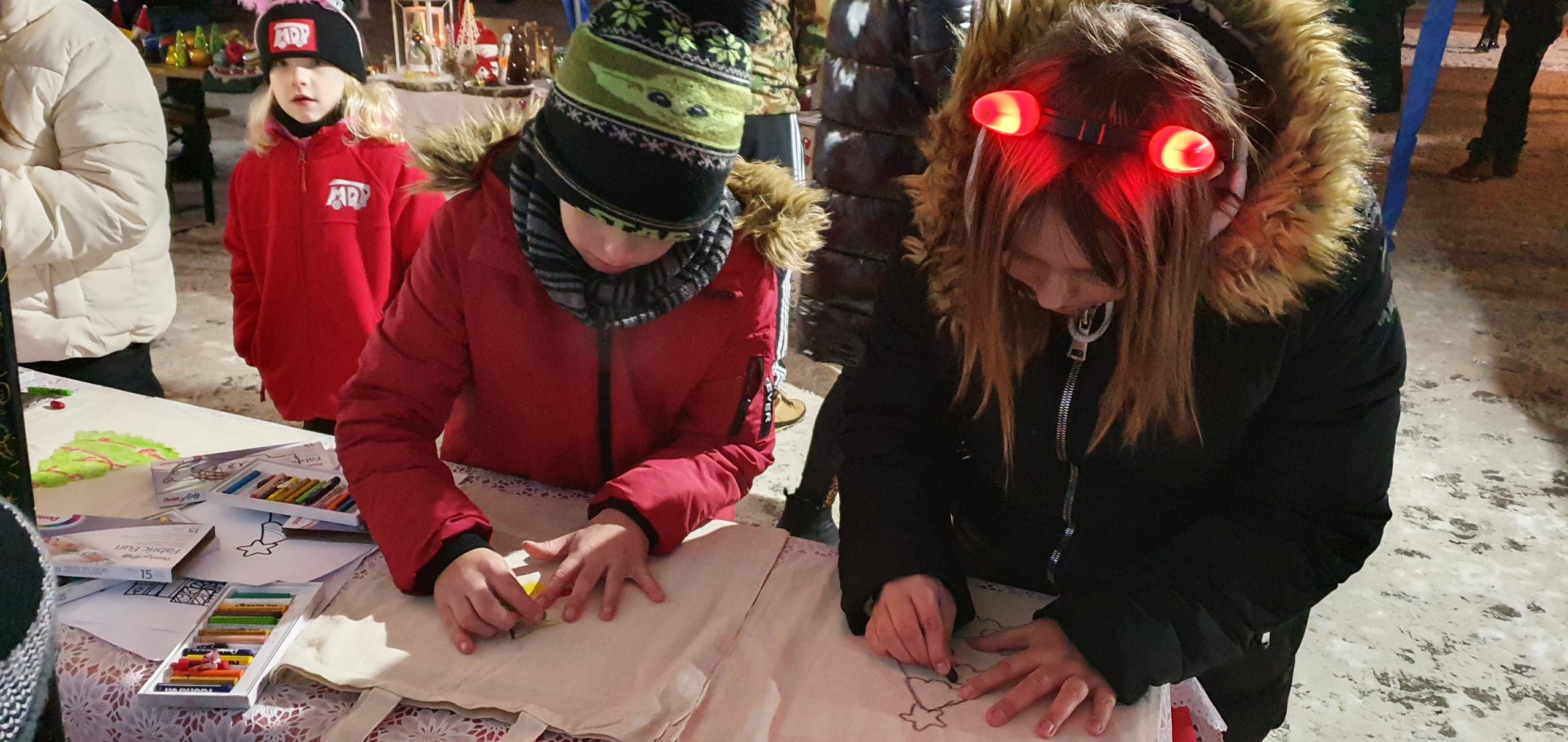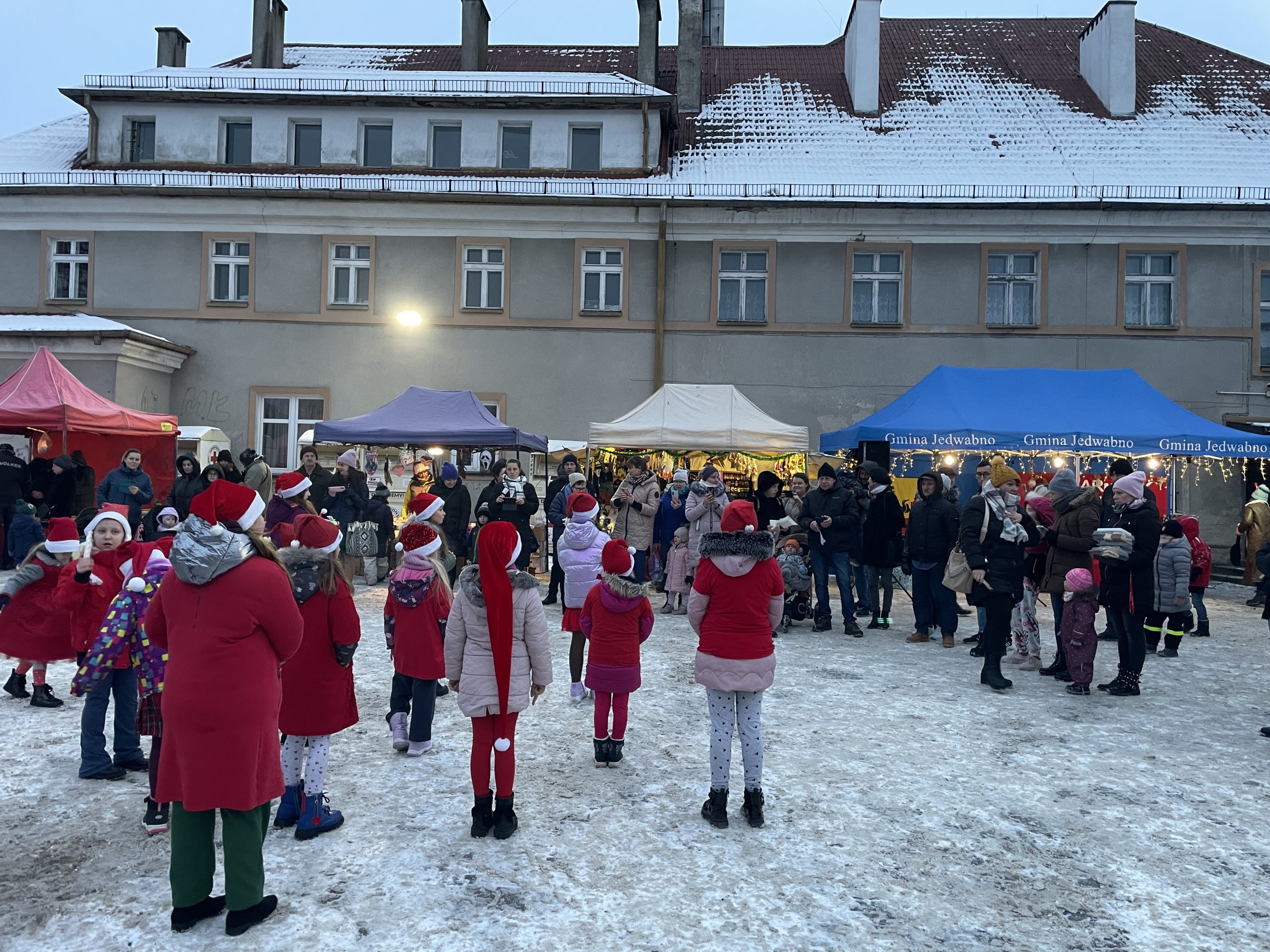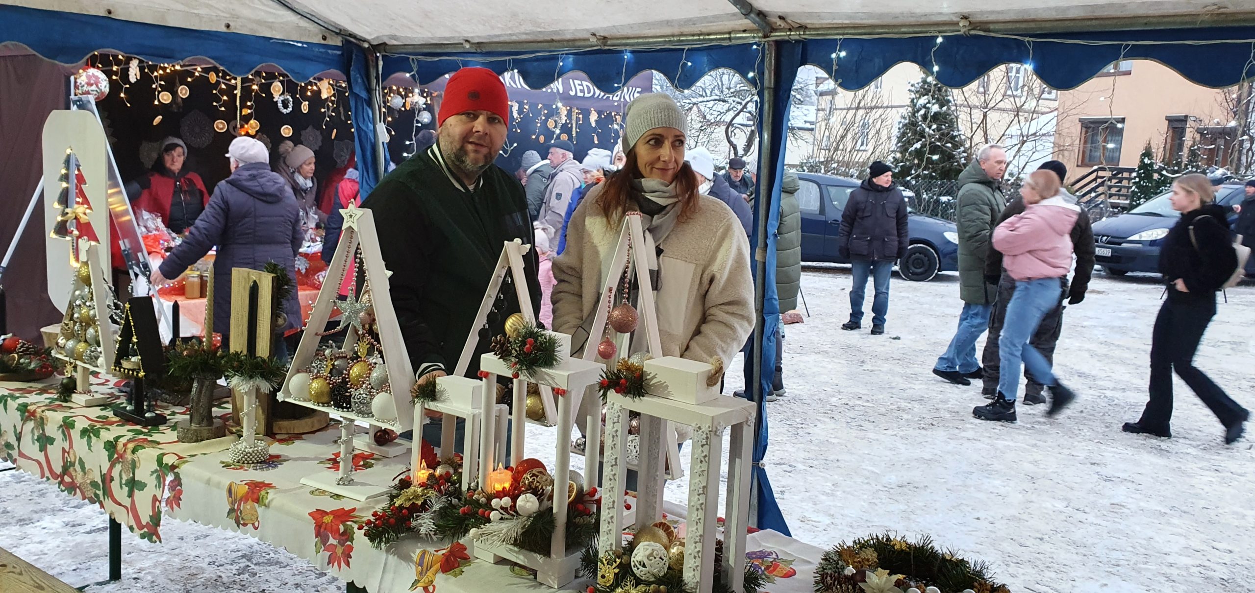 , warsztaty malowania torebek świątecznych, książkowe animacje Gminnej Biblioteki Publicznej w Jedwabnie, stoiska naszych lokalnych rękodzielników, stoiska z miodem i wędlinami, stoisko kulinarne Klubu Seniora „Złota Jesień” oraz Gminnego Koła Gospodyń Wiejskich w Jedwabnie.
