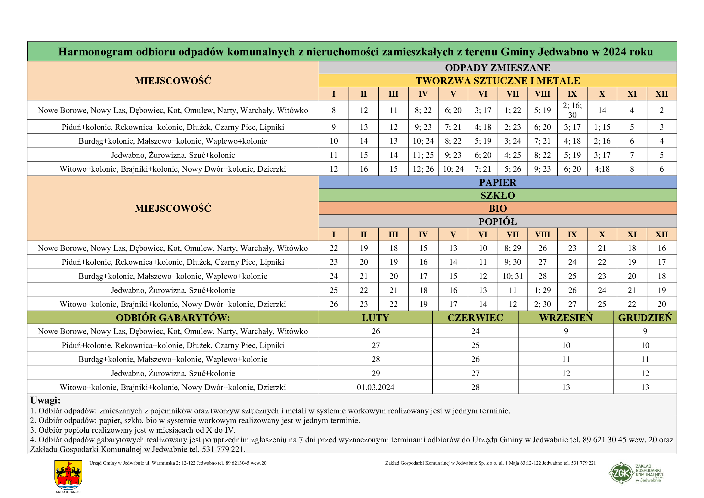 UWAGA – odbiór popiołu w terminach od października do kwietnia.