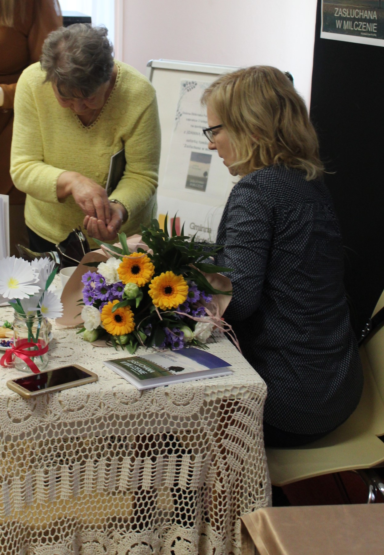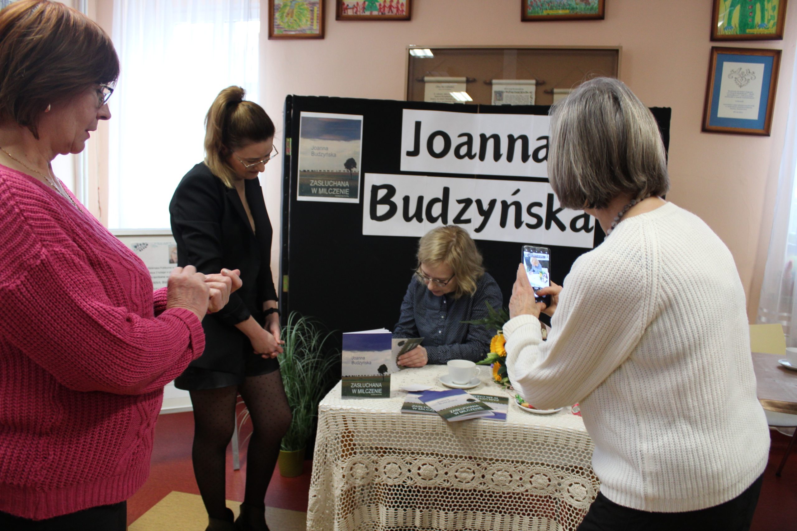Dyskusja okazała się niebywale owocna, a tomiki poezji pani Joanny pt. „Zasłuchana w milczenie” rozeszły się błyskawicznie! Bardzo dziękujemy wszystkim za obecność i zapewniamy, że niebawem bibliotekę odwiedzą kolejne literackie perełki.