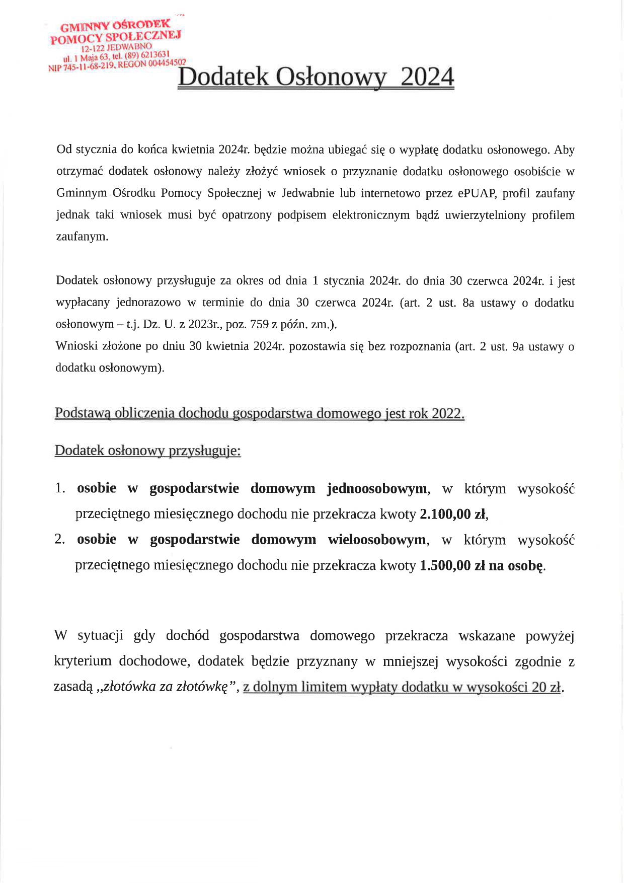Od stycznia do końca kwietnia 2024 r. można ubiegać się o wypłatę dodatku osłonowego.