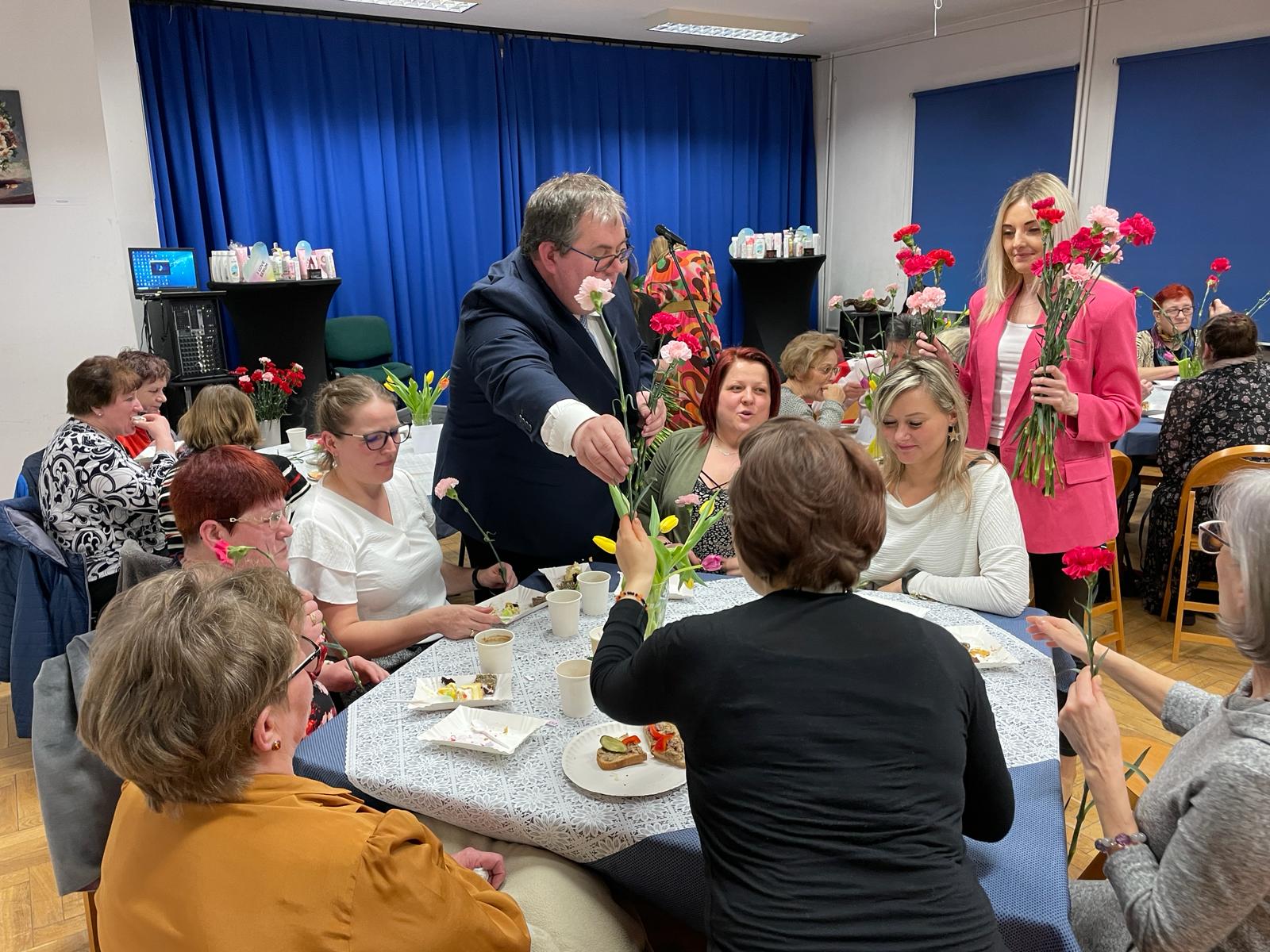 8 marca 2024 r. obchodziliśmy Międzynarodowy Dzień Kobiet. W piątek, z tej właśnie okazji zaprosiliśmy Panie zamieszkałe na terenie Gminy Jedwabno na koncert gitarzysty akustycznego fingerstyle – Piotra Krępecia, który zaprezentował nam swoją niezwykłą twórczość. Po muzycznych doznaniach jakie zapewnił artysta, panie przeszły do sali tanecznej na kobiece pogaduszki przy kawie i ciastku. Tam głos zabrała Marszałek Województwa Warmińsko – Mazurskiego Pani Sylwia Jaskulska oraz Wójt Gminy Jedwabno Pan Sławomir Ambroziak, który składając najlepsze życzenia obdarował każdą z przybyłych Pań uroczym kwiatkiem. Podczas degustacji można było podziwiać wystawę prac pt. „Kobieta” przygotowaną przez uczestników Środowiskowego Domu Samopomocy w Jedwabnie, pod kierunkiem terapeuty Pani Beaty Federowicz.