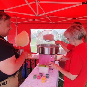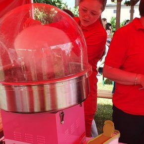 - Namiot Caritas Jedwabno i przygotwanie waty cukrowej.