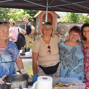 - Pani sołtys Jedwabna i pracownice GOPS Jedwabno i ŚDS Jedwabno w namiocie z kulinariami..
