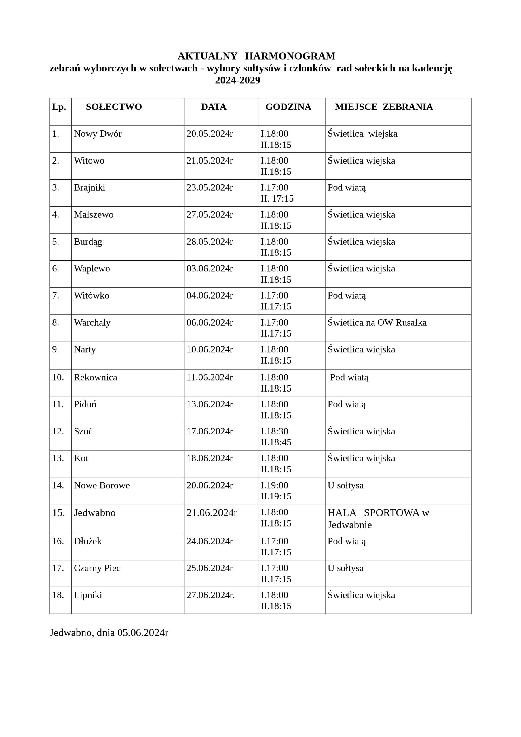 Aktualny harmonogram zebrań wyborczych w sołectwach