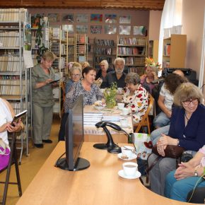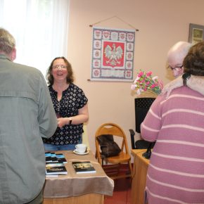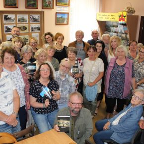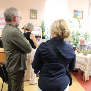 - Dyrektor GBP Irena Cytruk, autor Michał Aleksander Majewski wraz z uczestnikami spotkania