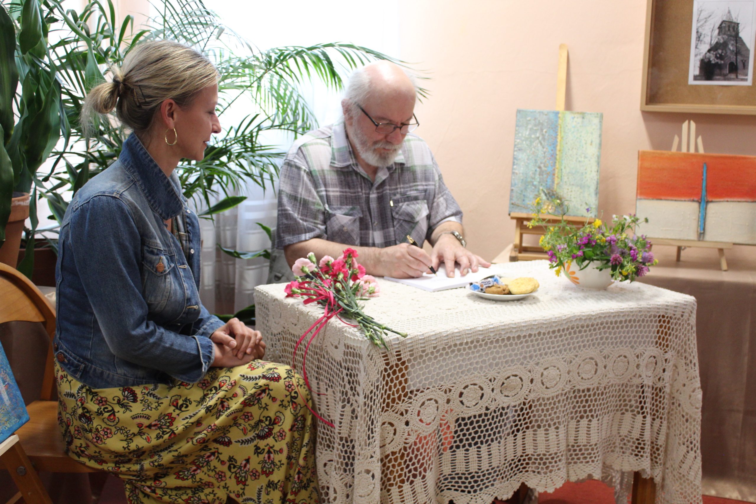 Dodatkowym atutem były przepiękne obrazy pani Agnieszki Zaleskiej, które zdobiły tło wydarzenia. Dodały one magicznego klimatu i wspaniale komponowały się z literackimi opowieściami, tworząc niezapomnianą scenerię dla tego wieczoru.
