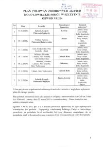 3. Plan Polowań zbiorowych 2024/2025 Koło Łowieckie Sokół w Szczytnie Obwód Nr 264