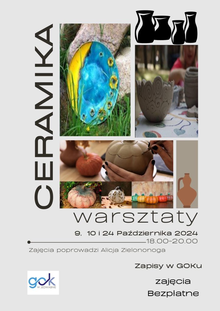 Zapraszamy na 3 spotkania, podczas których wyczarujecie swoje wymarzone dzieła. Zajęcia poprowadzi Alicja Zielononoga. Pani Alicja jest wykwalifikowanym instruktorem ceramiki i jak sama o sobie mówi -ma dekadę doświadczenia.
