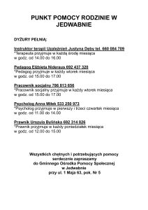 3. Aktualny wykaz dyżurów specjalistów w Punkcie Pomocy Rodzinie.