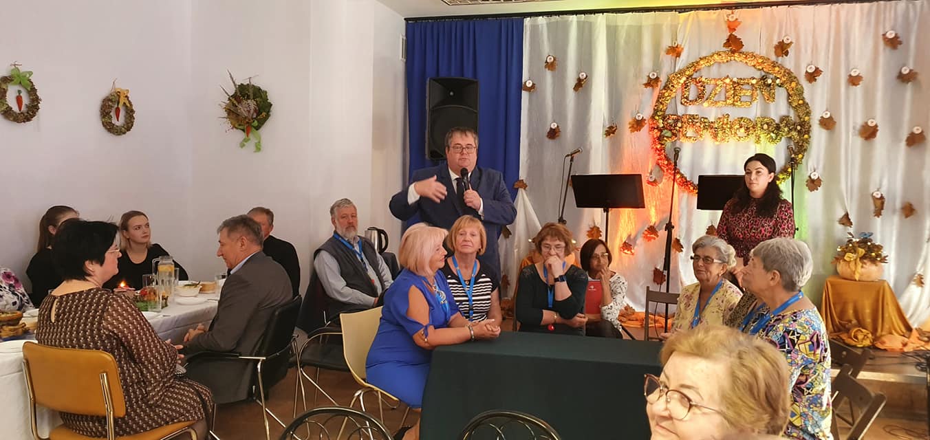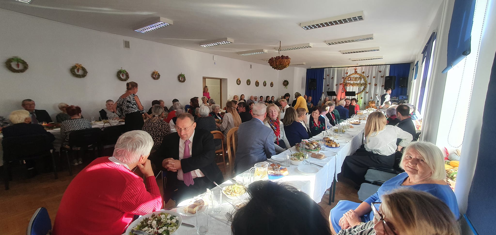 Gminny Dzień Seniora w Jedwabnie odbył się 17 października 2024 r. , w GOK Jedwabno. Zgromadził liczne grono Jubilatów, którzy przybyli, aby wspólnie uczcić to święto. Organizatorami tego wydarzenia byli: Klub Seniora „Złota Jesień”, Środowiskowy Dom Samopomocy w Jedwabnie oraz Gminny Ośrodek Kultury w Jedwabnie. Program artystyczny na tę okazję przygotowali członkowie Gminnego Koła Gospodyń Wiejskich w Jedwabnie, uczestnicy Środowiskowego Domu Samopomocy w Jedwabnie oraz „Muzyczne Trio” w składzie: Aleksandra Koperska, Agata Laskowska i Bartosz Abramski. Organizatorzy przygotowali mnóstwo pysznych dań i przekąsek oraz jak na takie święto przystało, tort dla Jubilatów. Atmosfera wydarzenia była pełna serdeczności i radości, a wszyscy uczestnicy bawili się doskonale, ciesząc się wspólnie spędzonym czasem.
