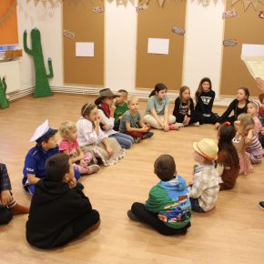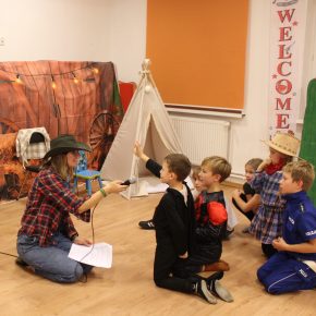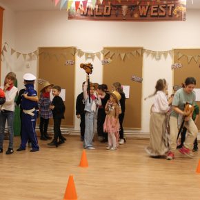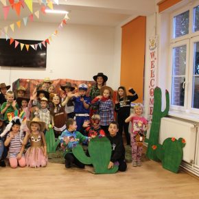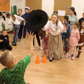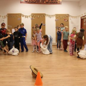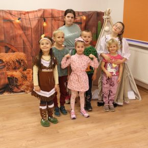 Jak co roku Gminna Biblioteka Publiczna wzięła udział w akcji „Noc Bibliotek” – tym razem dzieci przeniosły się na Dziki Zachód aż do filii bibliotecznej w Nowym Dworze. Wieczór był pełen przygód i niezapomnianej zabawy. Dzieci przybyły w fantastycznych strojach, a każda atrakcja dostarczyła wielu emocji i uśmiechu. Plan imprezy obfitował w ekscytujące aktywności: prezentacja strojów, konkursy zręcznościowe, jak rzut podkową, slalom na koniku, bieg w workach czy poszukiwanie złota. Nie zabrakło quizu o Dzikim Zachodzie, a także czasu na zasłużony relaks przy filmie.